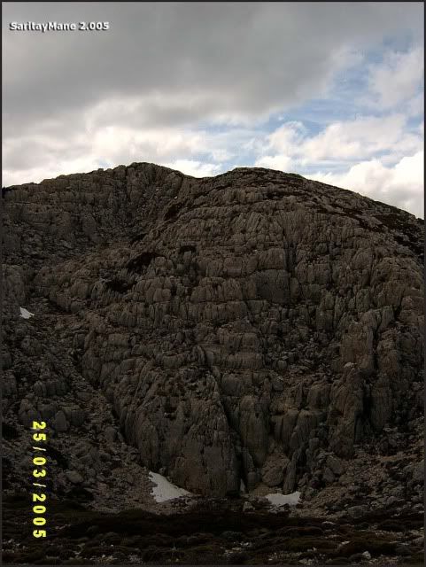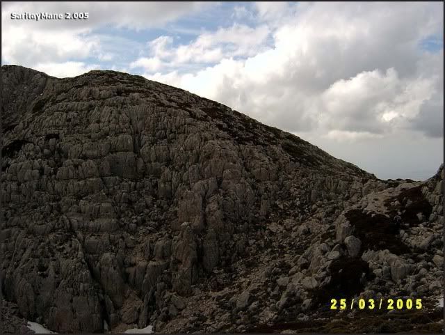 Recorriendo el cordal en dirección a la cima de Mágina, siguiendo los rastros de sendero, el viento sopla fuerte y las nubes continuan su avance, empeorando la visibilidad desde donde nos encontramos.