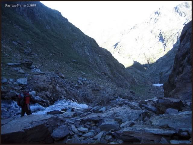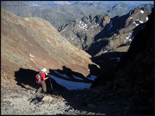 En el descenso al collado entre los dos tresmiles más elevados de la zona.