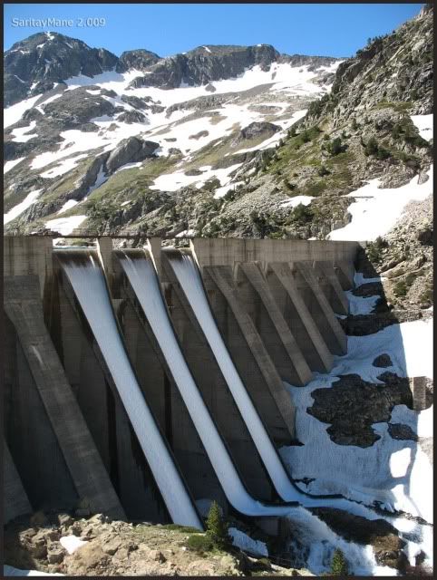 ... que desagua por los aliviaderos continuamente.