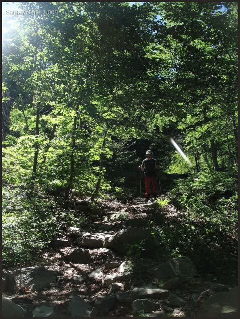Refugiándonos a la sombra en el descenso.