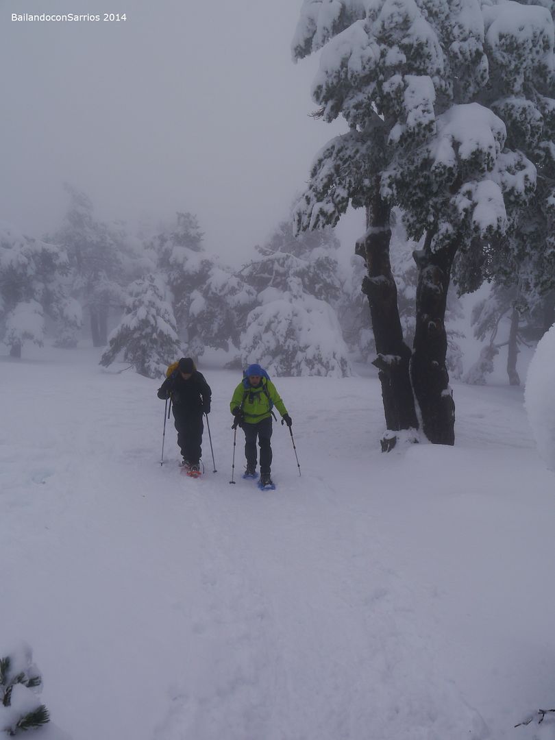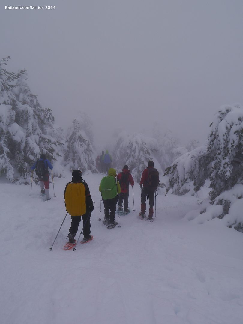 Fuera del cobijo del bosque el viento sopla con fuerza por lo que, tras ascender unos cuantos metros más, Manolo decide que es hora de iniciar el descenso, somos un grupo muy numeroso y algunos no tienen experiencia con las raquetas por lo que aunque la ascensión hasta la cresta no reviste mucha dificultad, mejor no arriesgarse... nos quedamos sin cima en Siete Picos, con lo cerca que estamos del punto más alto... :(