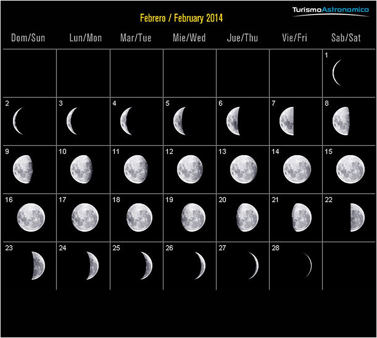 Detalle del Calendario Lunar del mes de Febrero del 2014.