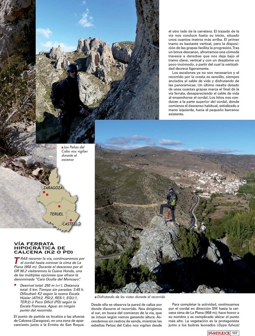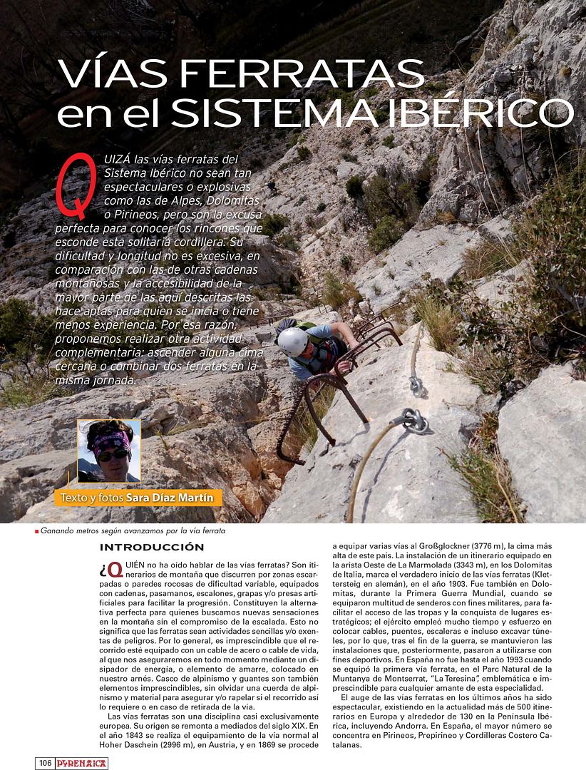 El artículo consta de 6 páginas donde se describen 5 vías ferratas existentes en el Sistema Ibérico, solo una muestra de las existentes porque el número de vías ferratas en esta cordillera no es en absoluto despreciable. Ya sea en buena compañía o, en muchos casos en solitario por circunstancias del guión, he tenido la suerte de poder realizar algunas de las vías ferratas más conocidas del Sistema Ibérico.