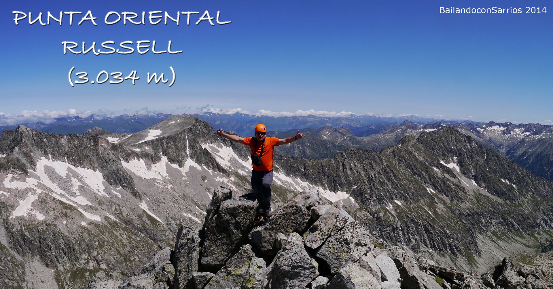 El majestuoso Russell nunca deja indiferente: él y sus cinco Tresmiles satélites constituyen los últimos Tresmiles por la vertiente SE del Macizo de la Maladeta y sus vías normales, aunque sencillas en cuanto a dificultad, son largas y discurren por un caótico terreno de bloques, por lo que tachar las 6 cimas en una sola jornada no es tarea fácil.