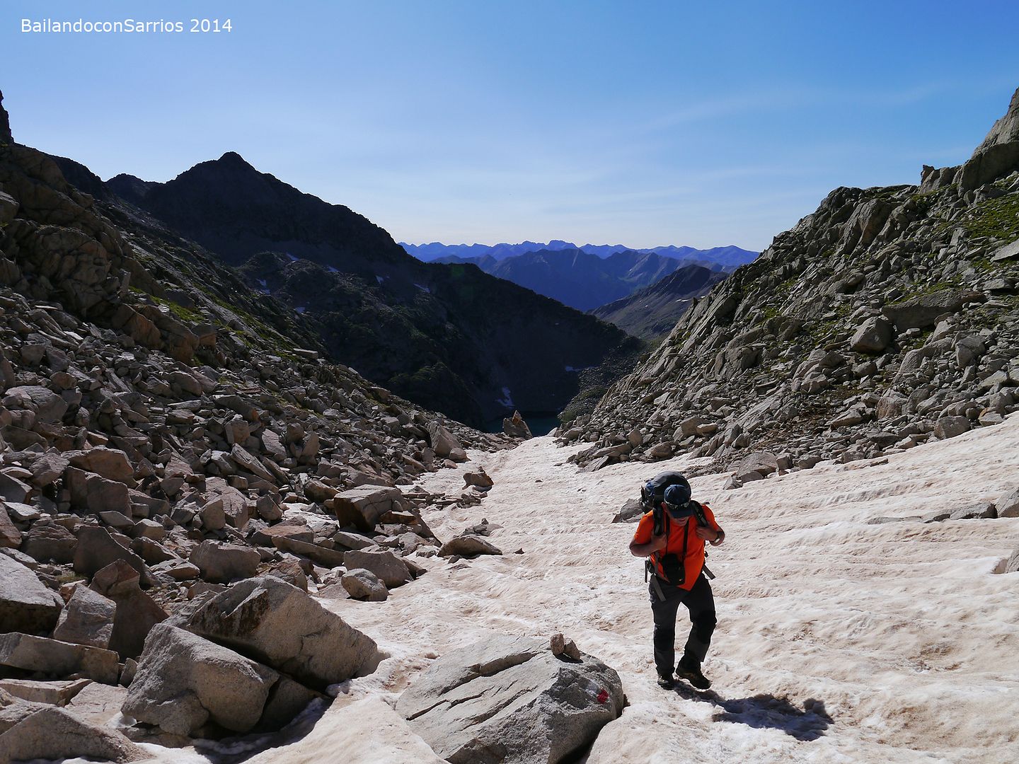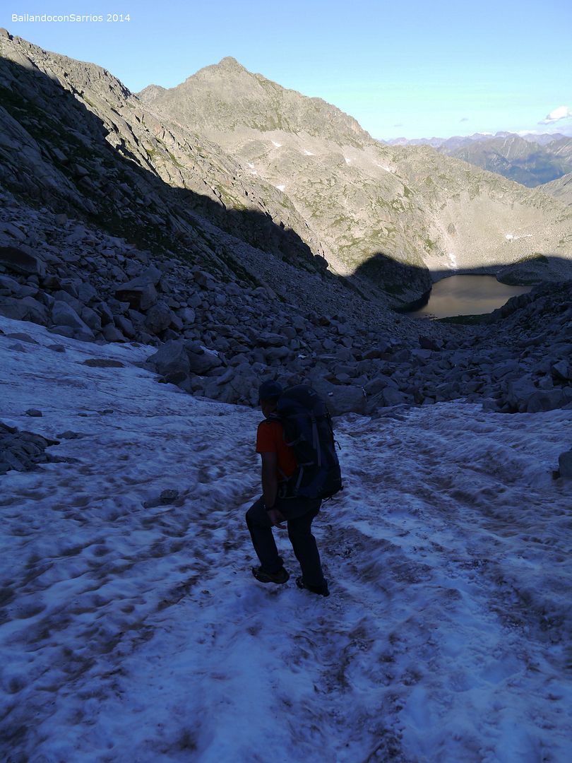 ... aprovecharemos este nevero para descender hasta ese ibón...