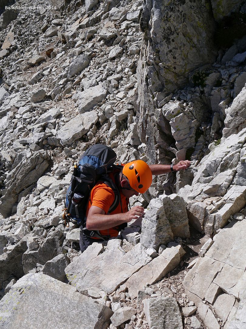 Pasos de grado II en la Canal, Cornisa o Diagonal SE que constituye la vía normal del Pico Russell desde el Embalse de Llauset.