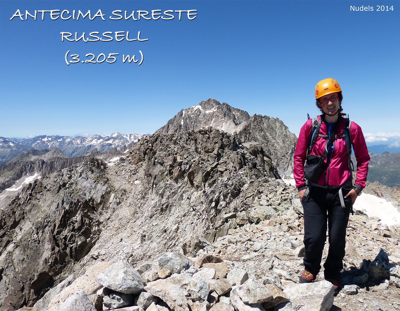 El majestuoso Russell nunca deja indiferente: él y sus cinco Tresmiles satélites constituyen los últimos Tresmiles por la vertiente SE del Macizo de la Maladeta y sus vías normales, aunque sencillas en cuanto a dificultad, son largas y discurren por un caótico terreno de bloques, por lo que tachar las 6 cimas en una sola jornada no es tarea fácil.