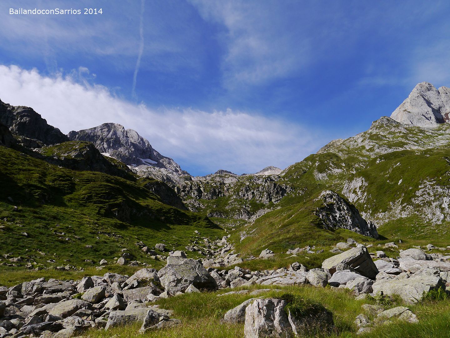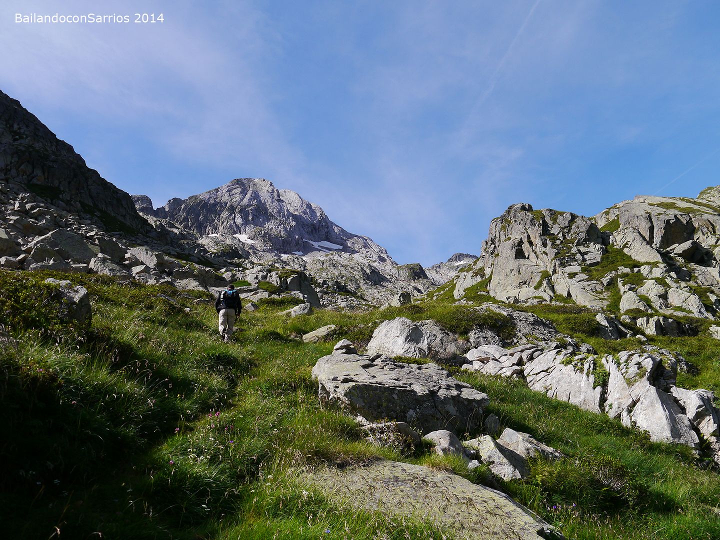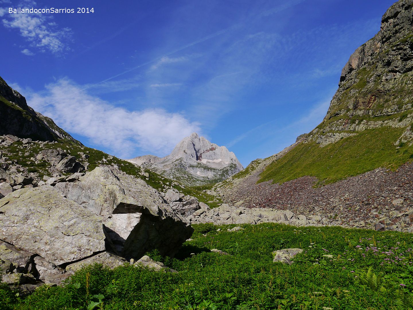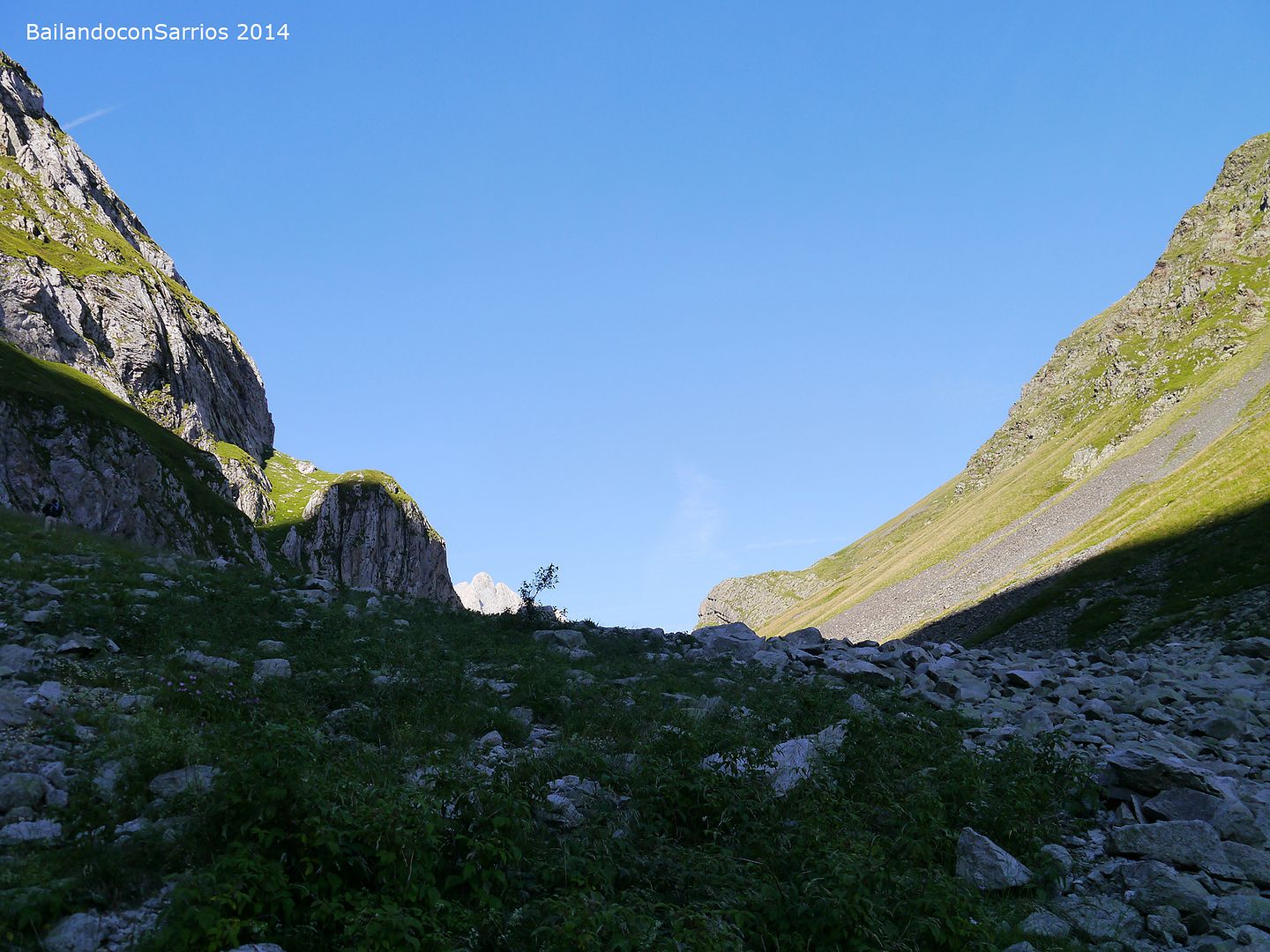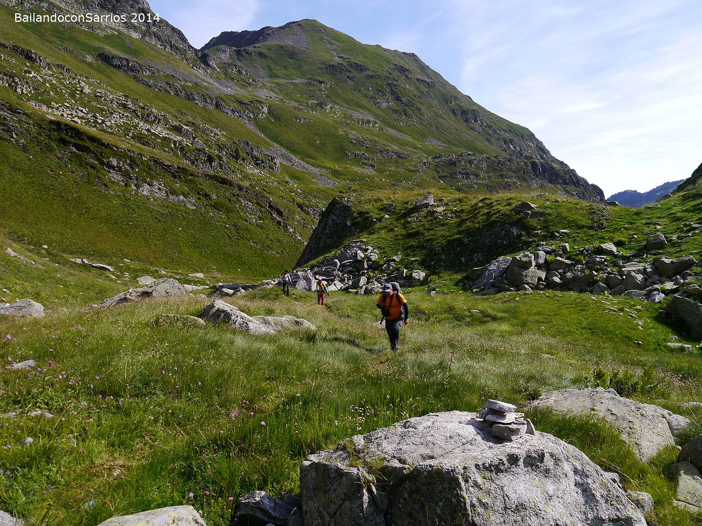 Desde hace un rato hemos perdido el evidente sendero que recorre el valle en dirección al Collado o Còth d'Alfred... no nos ponemos de acuerdo por donde seguir: Vicente se aventura por las alturas, Ferel y Juan se decantan a media ladera y Nudels y yo nos decidimos por el fondo del valle.