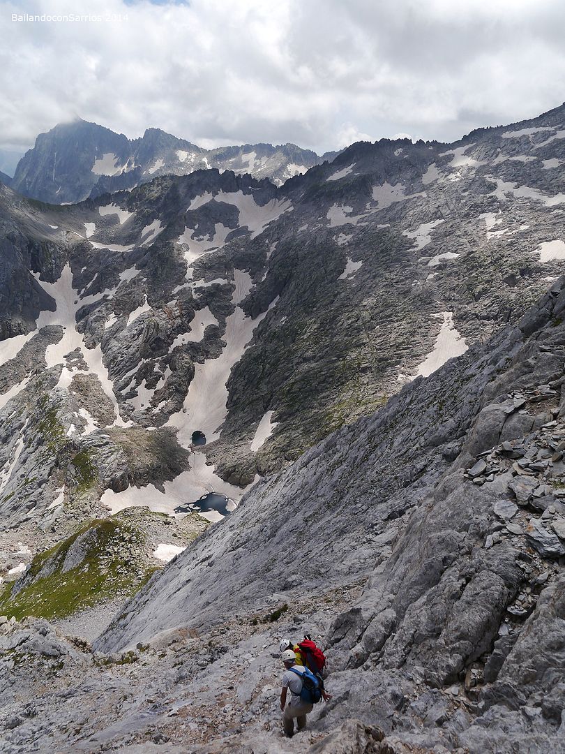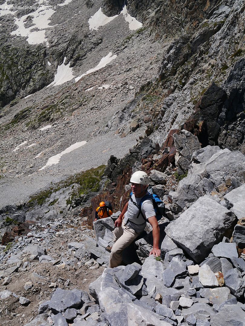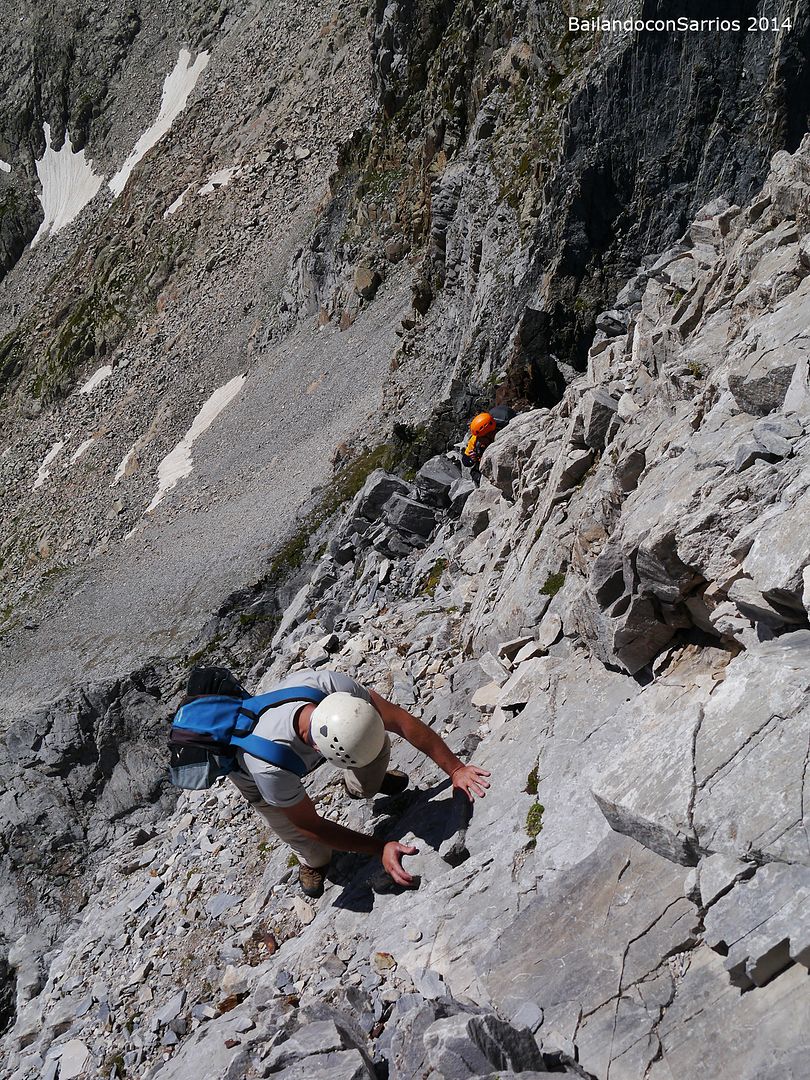 A las 12:45 PM alcanzamos la posición de Vicente y de Ferel y hacemos otra breve parada para ponernos el casco, a partir de aquí el terreno se torna vertical y mejor llevarlo en la cabeza que en la mochila.