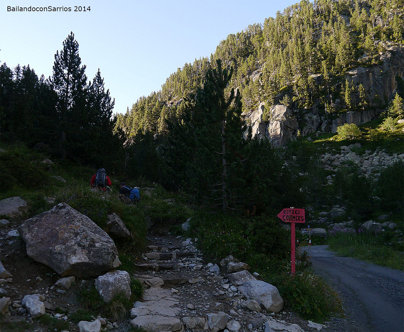 A las 8:15 AM estamos listos para comenzar la ascensión... desde aquí el camino está claro, hemos de seguir las indicaciones del Refugi de Colomèrs hasta el primer puente que encontremos, donde abandonaremos el sendero de subida al refugio para dirigirnos hacia el Estanh Long de Colomèrs y Estanh Obago, siguiendo ya el trillado GR 11.