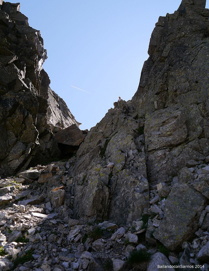 Resumiendo, ascenderemos por Canal Noroeste o Canal Nord-Oest (F+/150 m/II máx) y descenderemos por la Canal Norte o Canal Nord (F/100 m/I+ máx). Si alguien conoce la denominación correcta de estas canales, que deje un comentario y se lo agradeceré enormemente.
