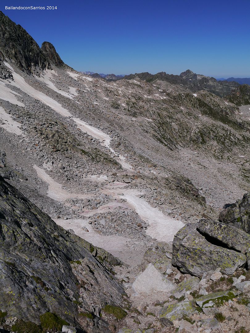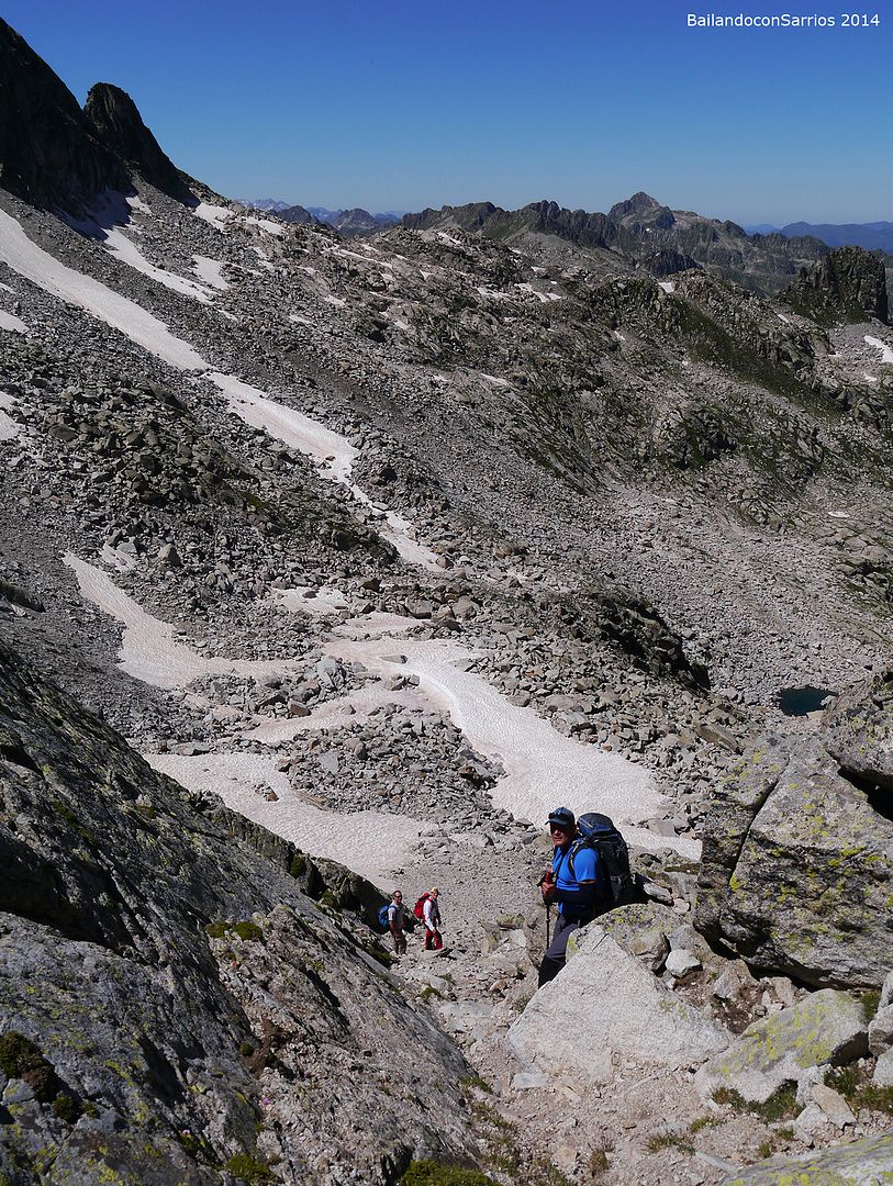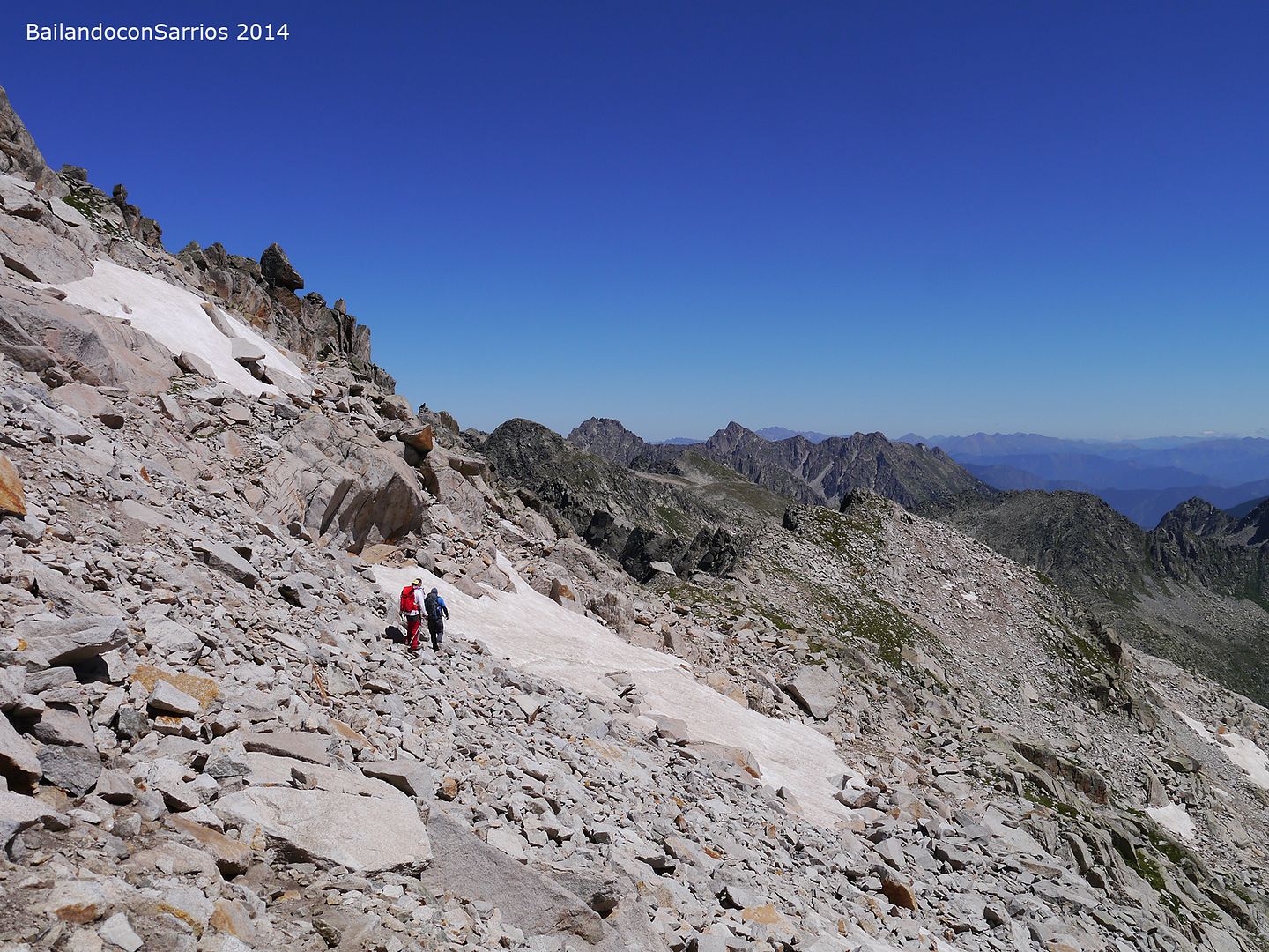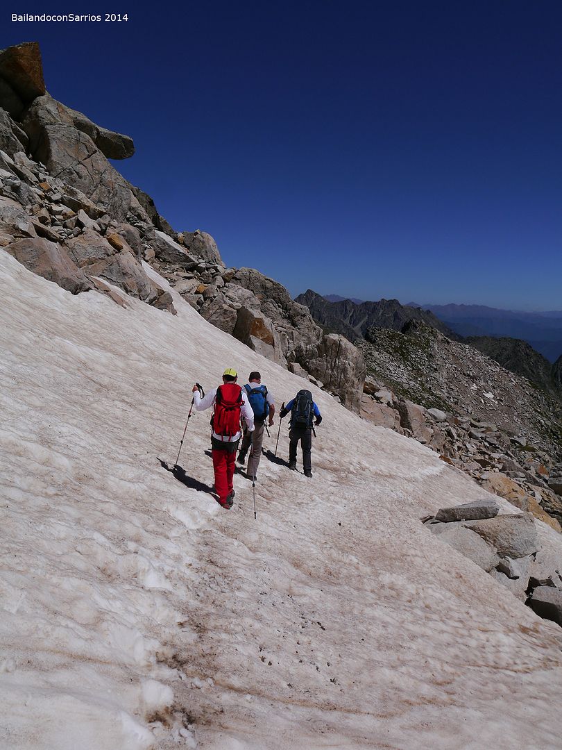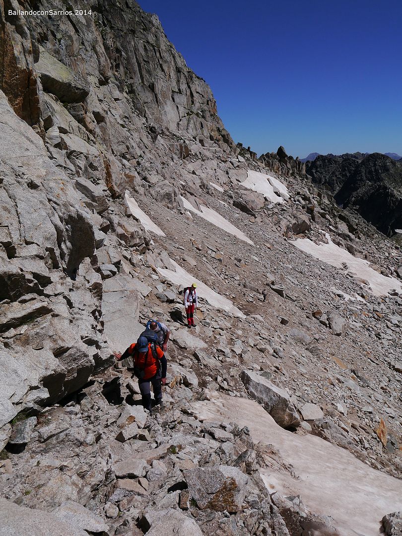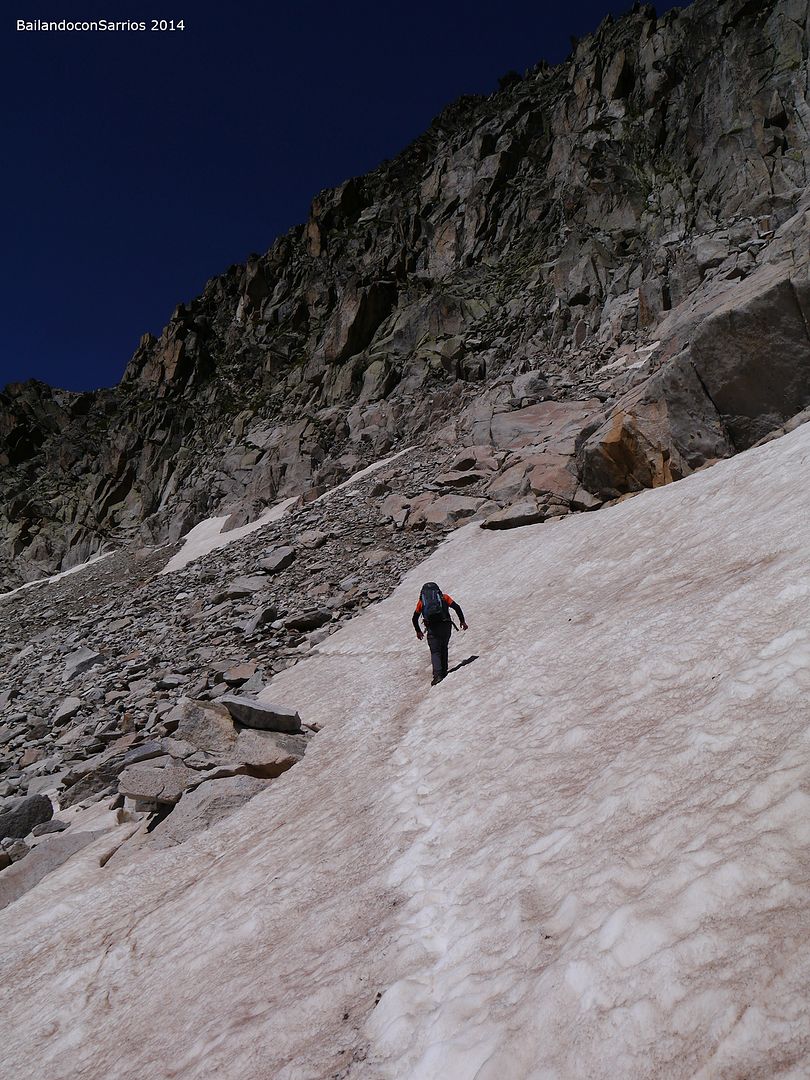 Embelesados con el panorama, nos pasamos la entrada de la canal por la que queremos descender para evitar descender por nuestra "Canal Noroeste" y nos toca volver sobre nuestros pasos, suerte que llevo el GPS para saber por donde hemos pasado a la ida.