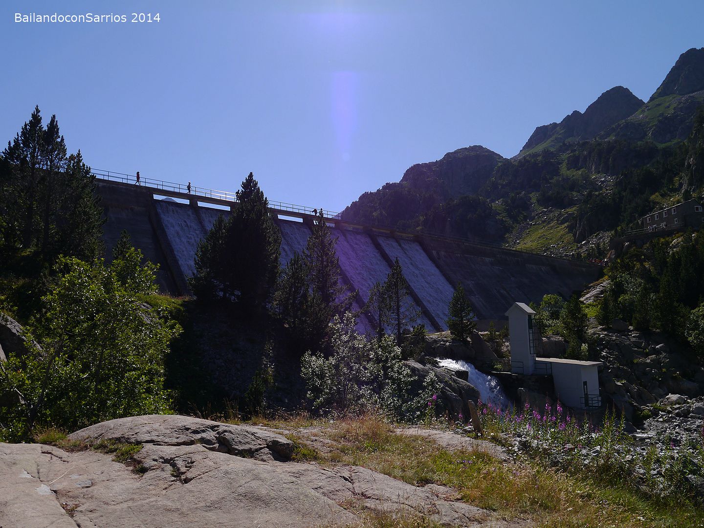 ... el antiguo Refugi de Colomèrs y el muro de contención del Estanh Major de Colomèrs...