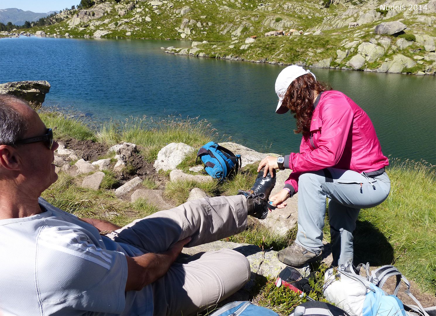 Es en este momento cuando Vicente se da cuenta de que una de sus botas se ha quedado sin parte de la suela!!! Nudels lleva un par de rollos de cinta aislante en la mochila, veremos que podemos hacer... suerte que estoy yo aquí porque ninguno de mis compañeros parece dispuesto a hacer nada por la bota de Vicente... :)