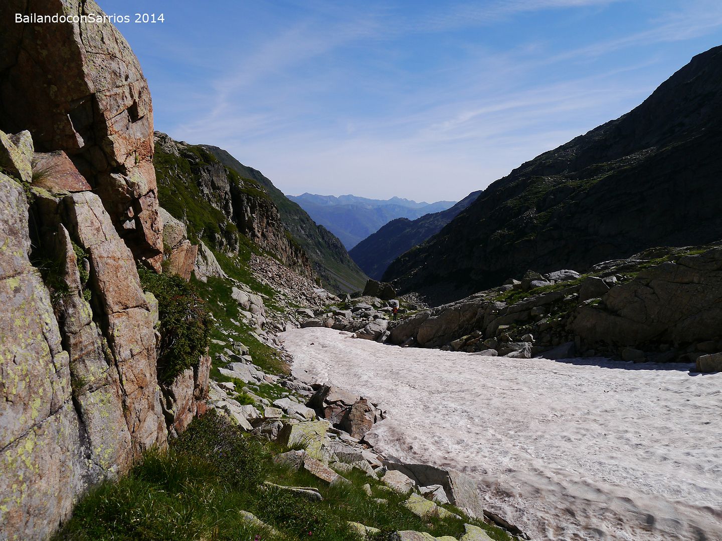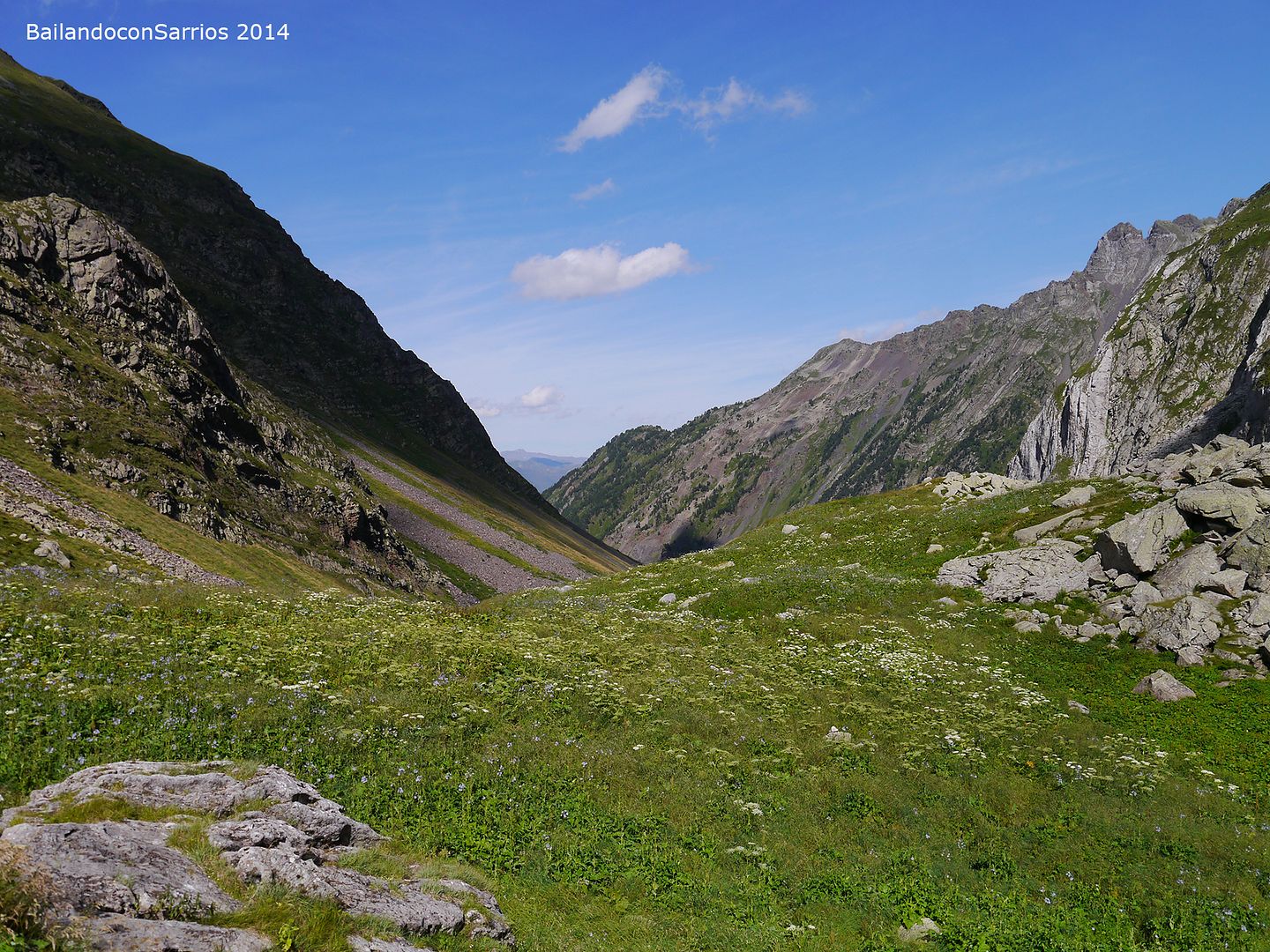 Desde hace un rato hemos perdido el evidente sendero que recorre el valle en dirección al Collado o Còth d'Alfred... no nos ponemos de acuerdo por donde seguir: Vicente se aventura por las alturas, Ferel y Juan se decantan a media ladera y Nudels y yo nos decidimos por el fondo del valle.