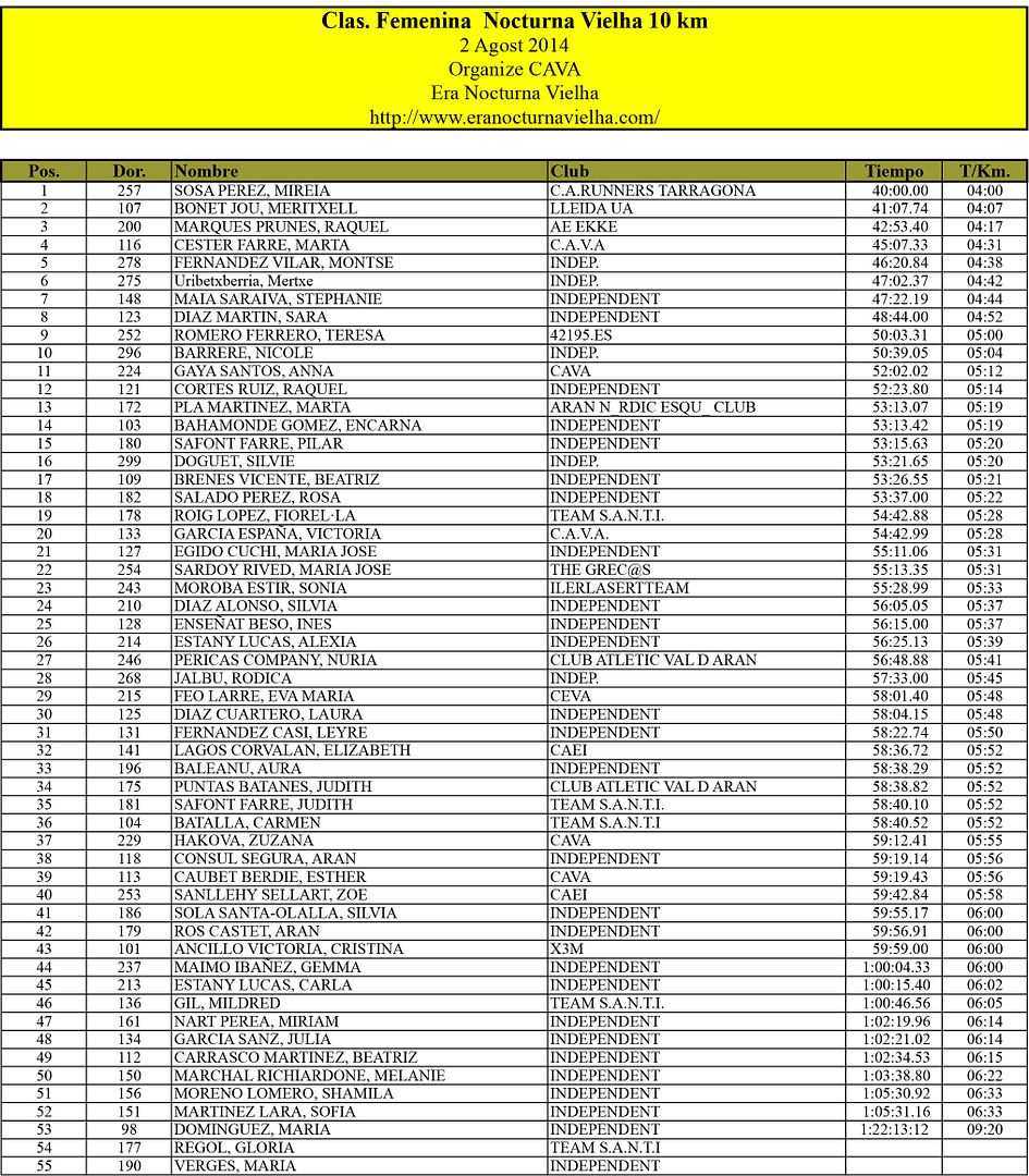 Al día siguiente, recibo un WhatsApp con el enlace de la clasificación de la carrera de 10 kilómetros y donde, ohhh sorpresa, estoy en 8ª posición femenina!!!