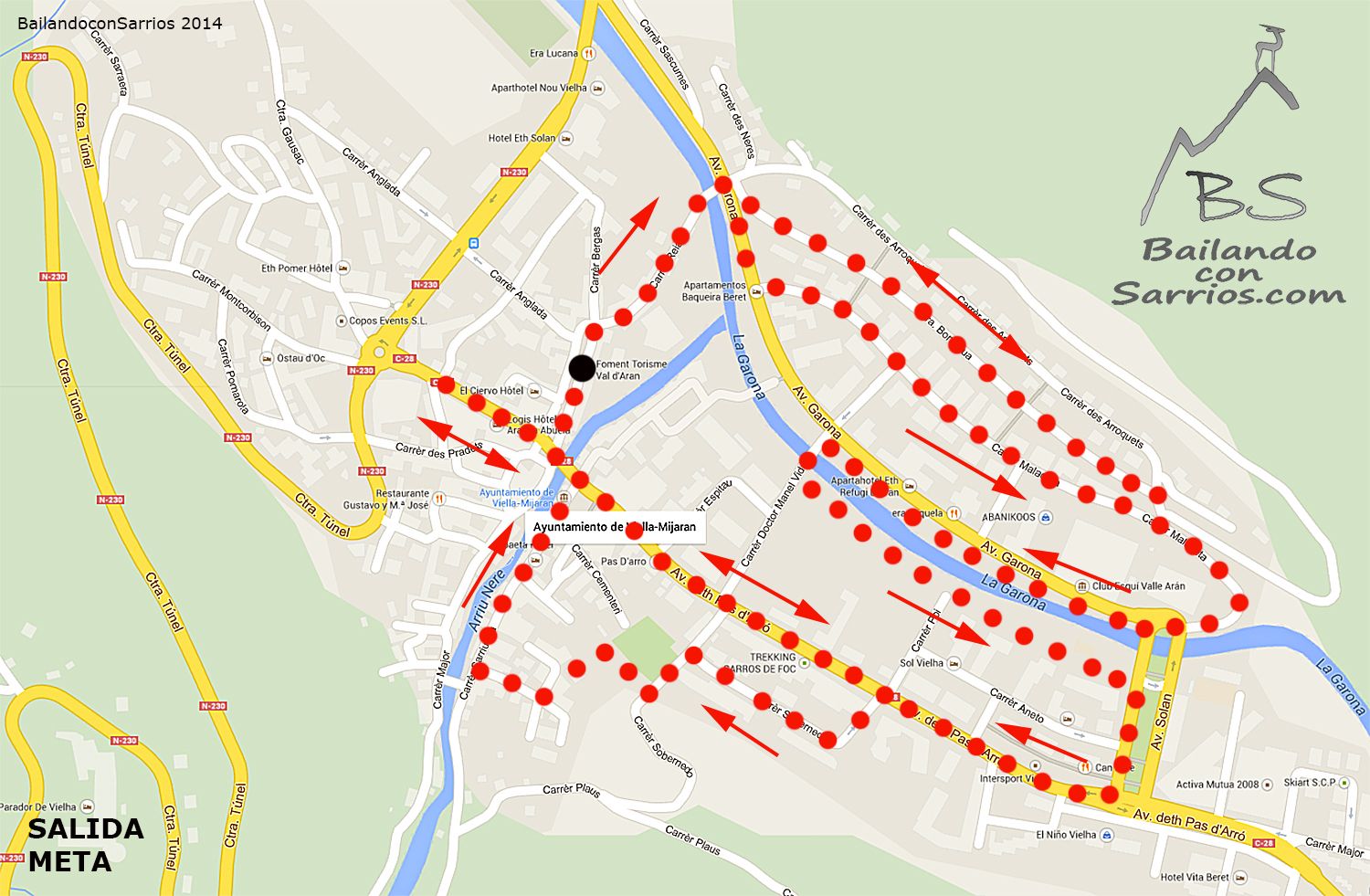 En el kilómetro 2,5 alcanzo a Nudels, que tiene un pequeño pinchazo en el gemelo... me ofrezco a quedarme con él pero me insiste que siga a mi ritmo que, sinceramente no es mucho mejor que el suyo... la subida al Cap dera Vila me ayuda a ganar posiciones y casi sin darme cuenta ya estoy en la Avenida deth Pass d'Arró, muy cerca del primer paso por la meta.