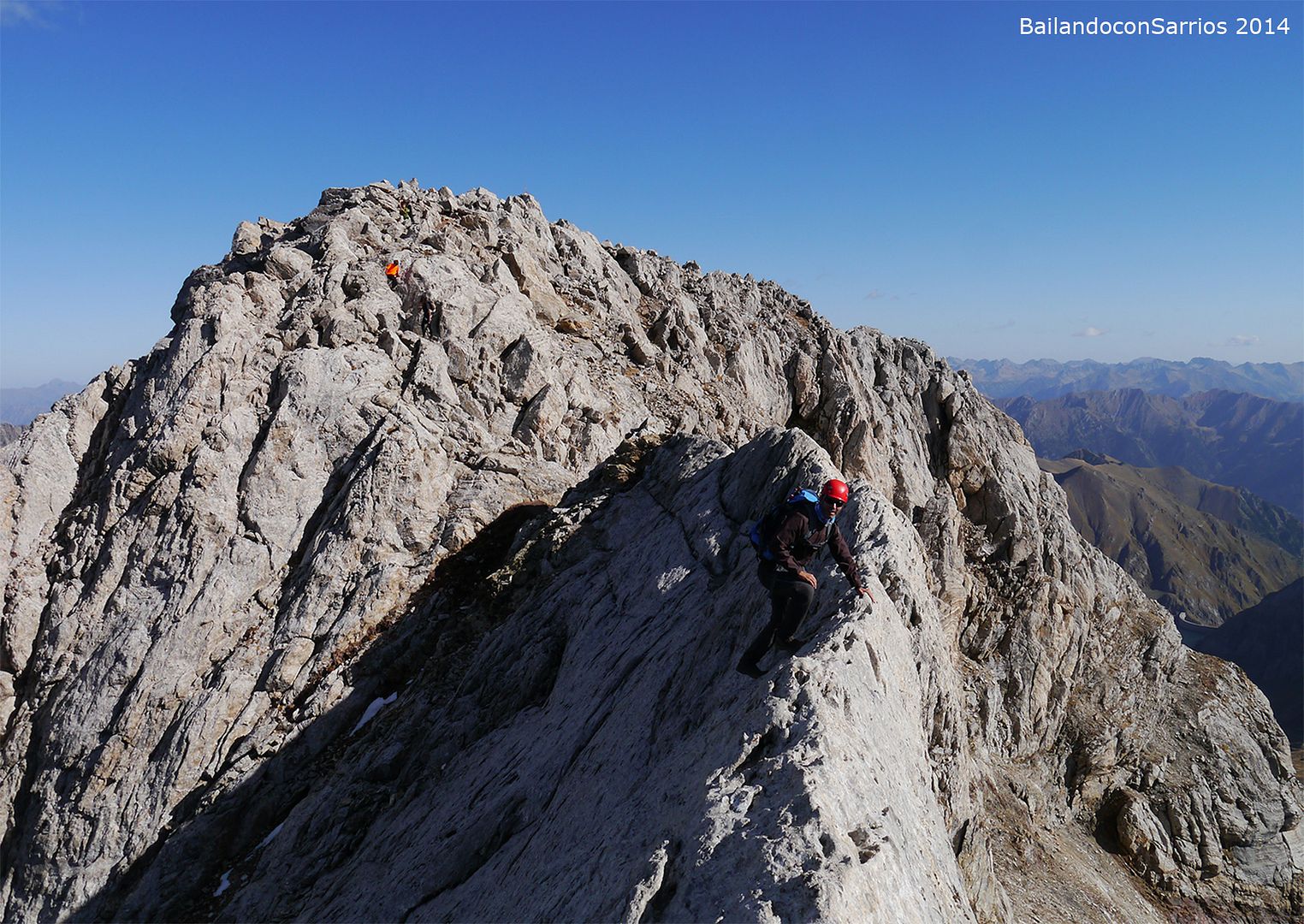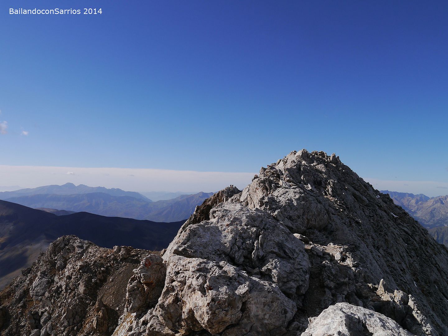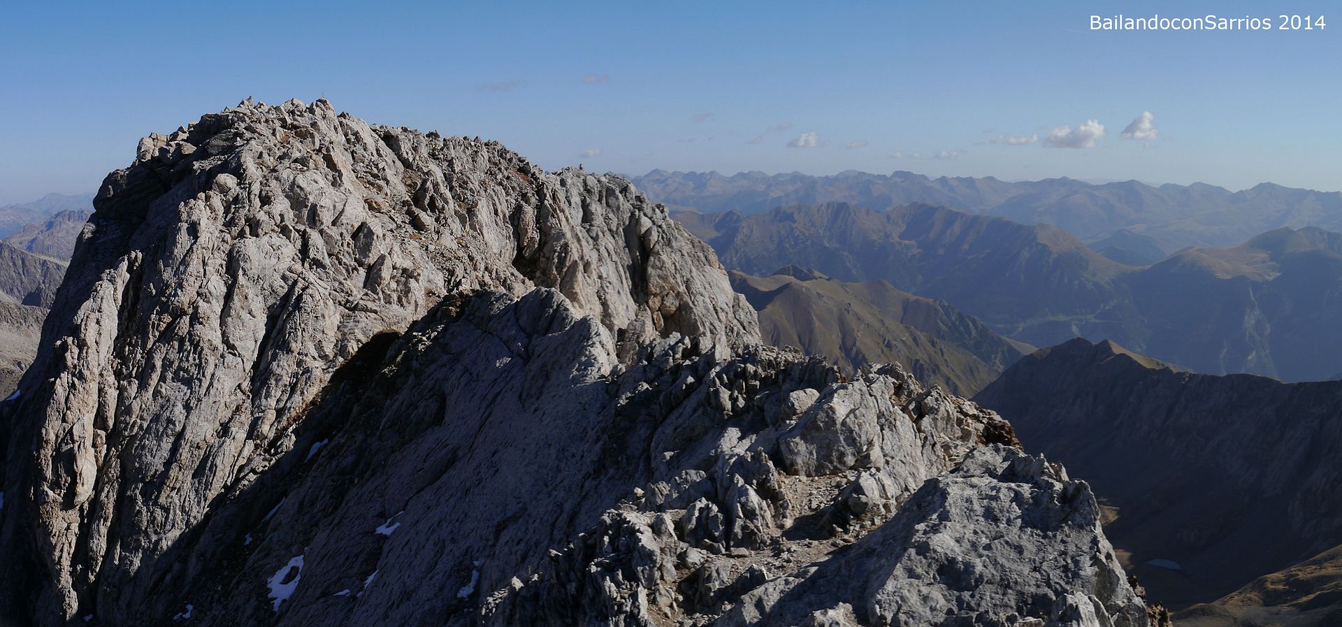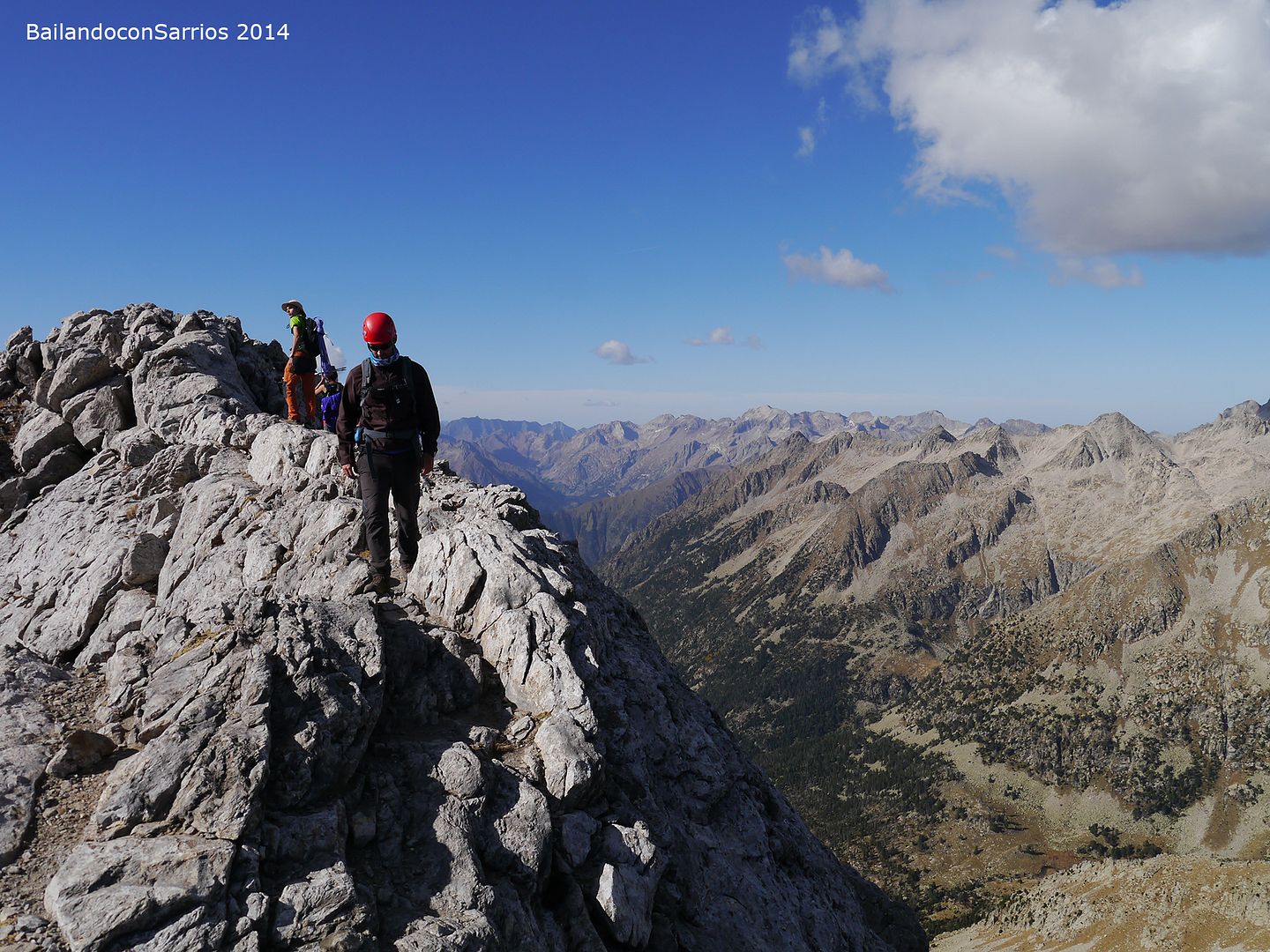 Aprovechando la visita de Mane a la Val d'Aran, no dejamos escapar la oportunidad para ascender a los mejores miradores de la vertiente meridional del Macizo de la Maladeta y para recorrer el famoso "Paso del Caballo", la afilada arista de caliza que une las dos cumbres.