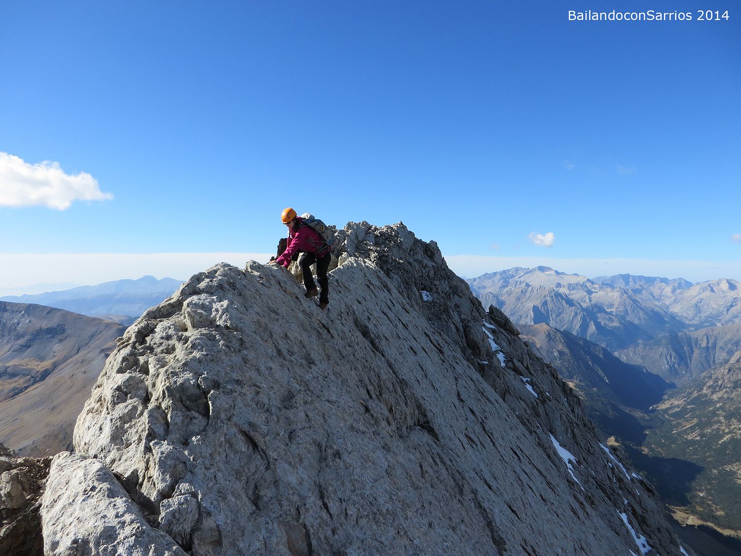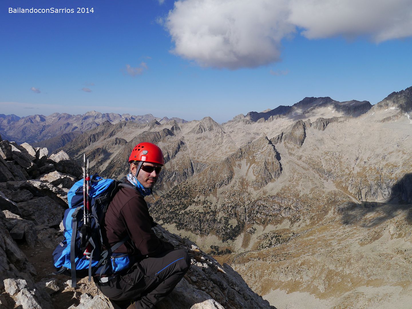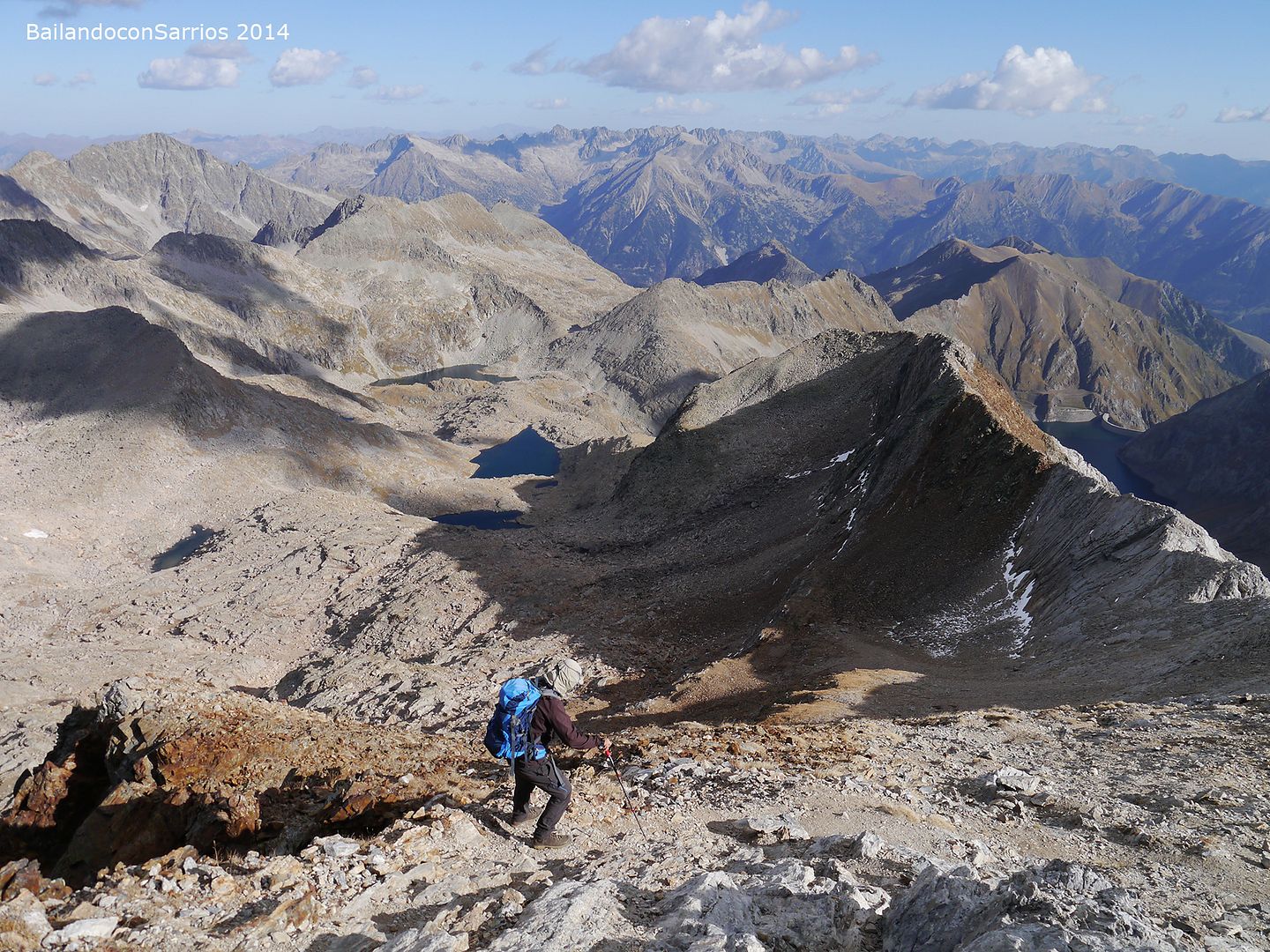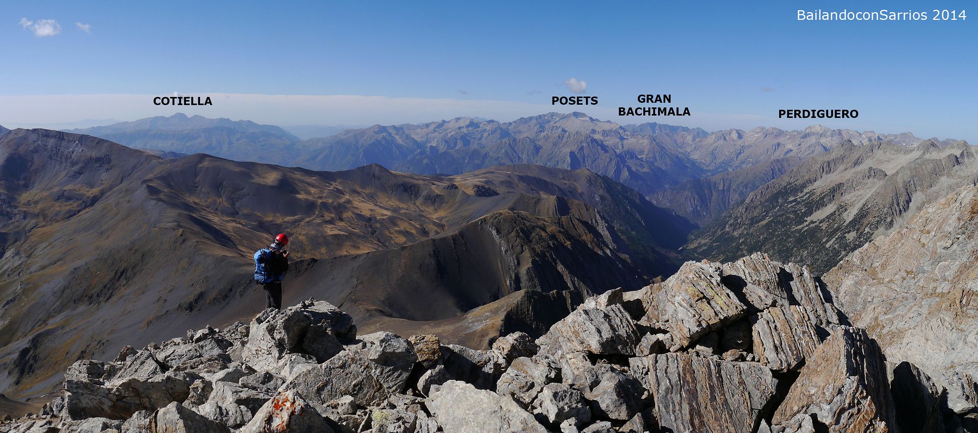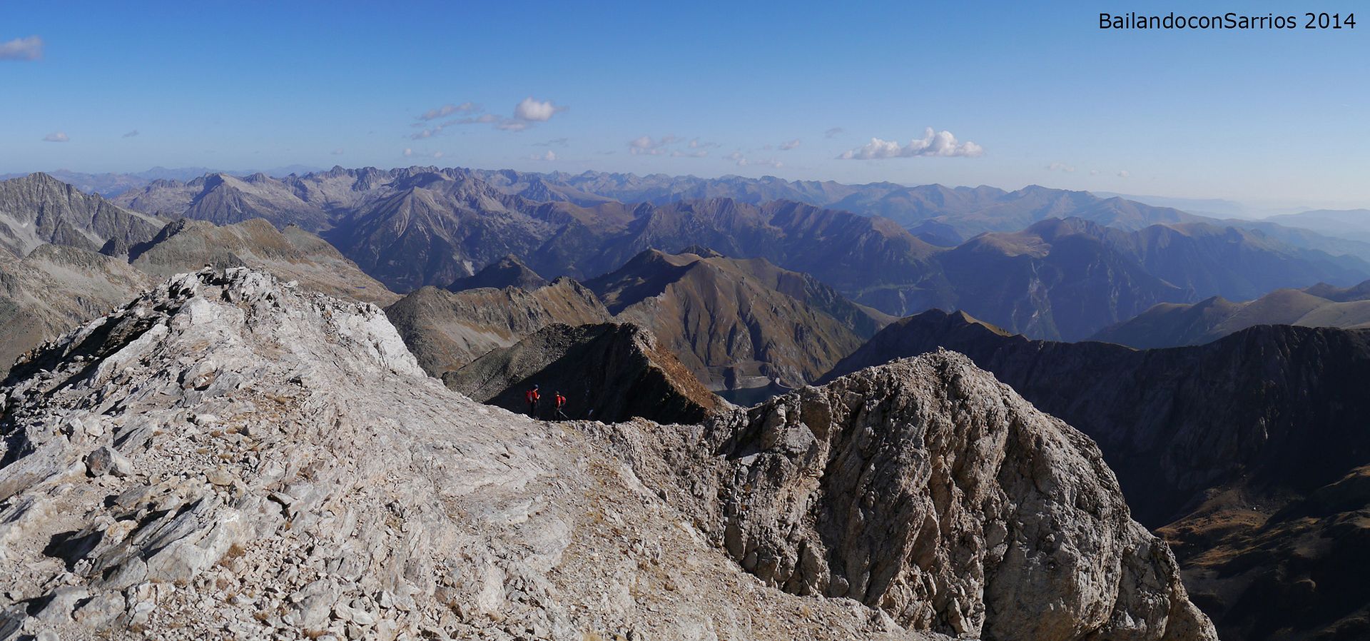 Aprovechando la visita de Mane a la Val d'Aran, no dejamos escapar la oportunidad para ascender a los mejores miradores de la vertiente meridional del Macizo de la Maladeta y para recorrer el famoso "Paso del Caballo", la afilada arista de caliza que une las dos cumbres.