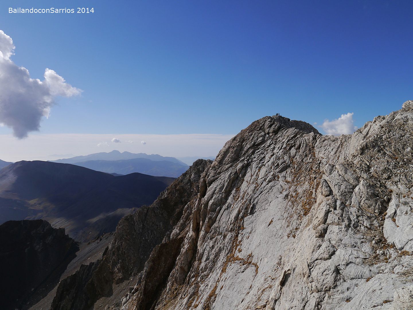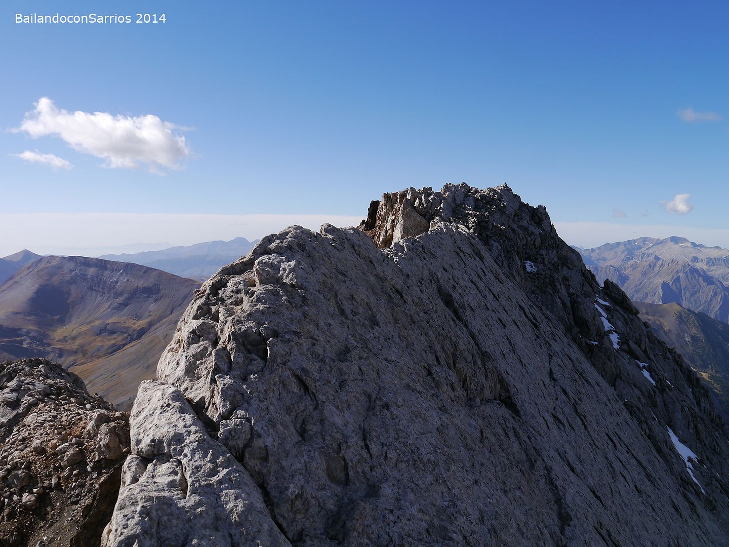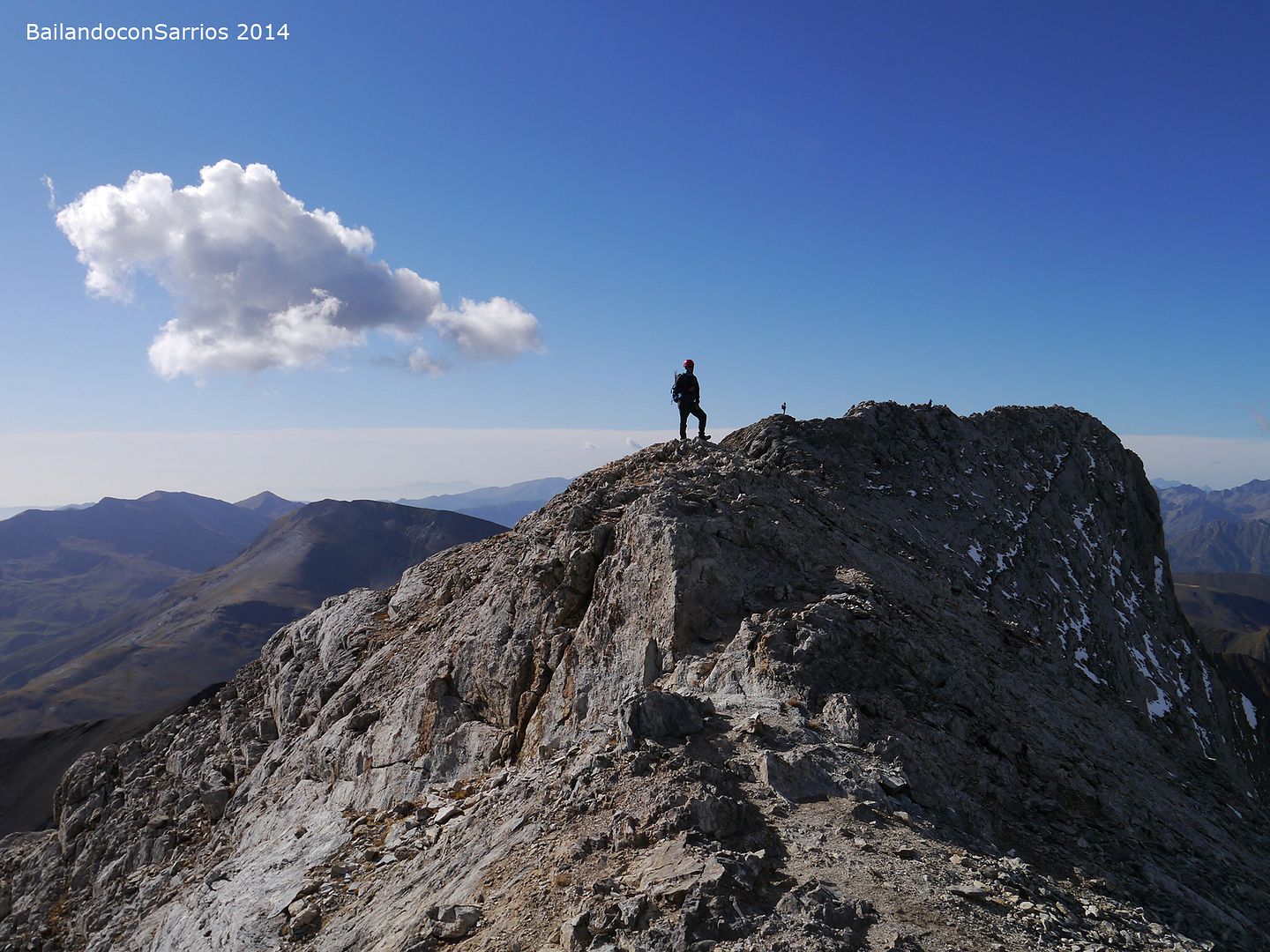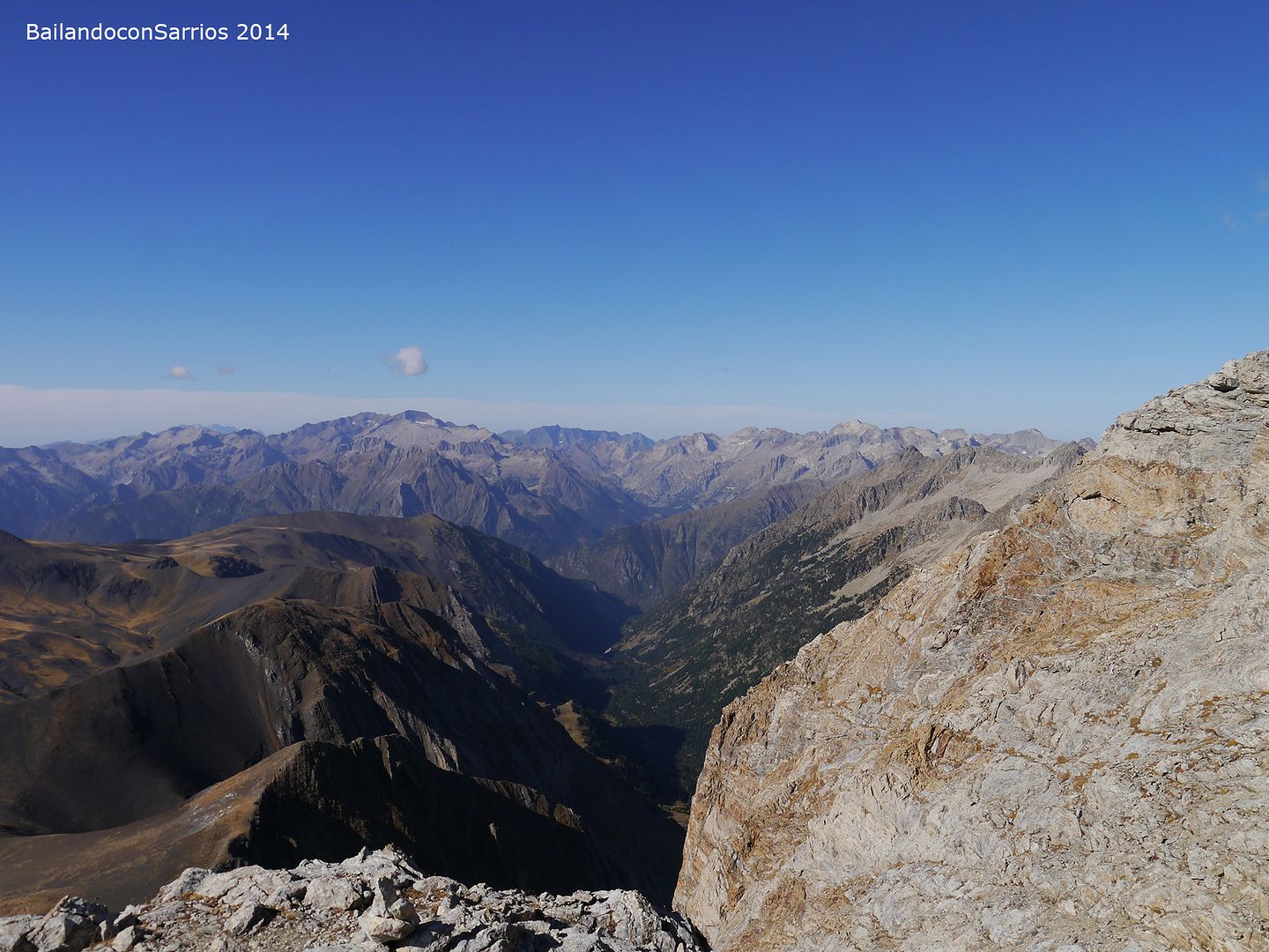Aprovechando la visita de Mane a la Val d'Aran, no dejamos escapar la oportunidad para ascender a los mejores miradores de la vertiente meridional del Macizo de la Maladeta y para recorrer el famoso "Paso del Caballo", la afilada arista de caliza que une las dos cumbres.