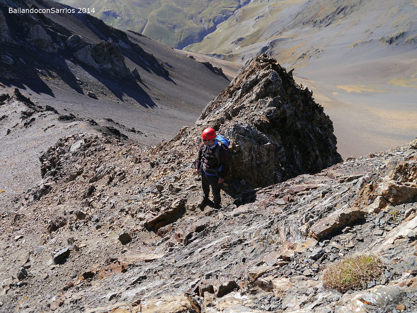 Pasos de grado II desde el Collado de Llauset hasta la Antecima Suroeste de la Tuca de Las Culebras por una cresta con mala calidad de roca, algo descompuesta.