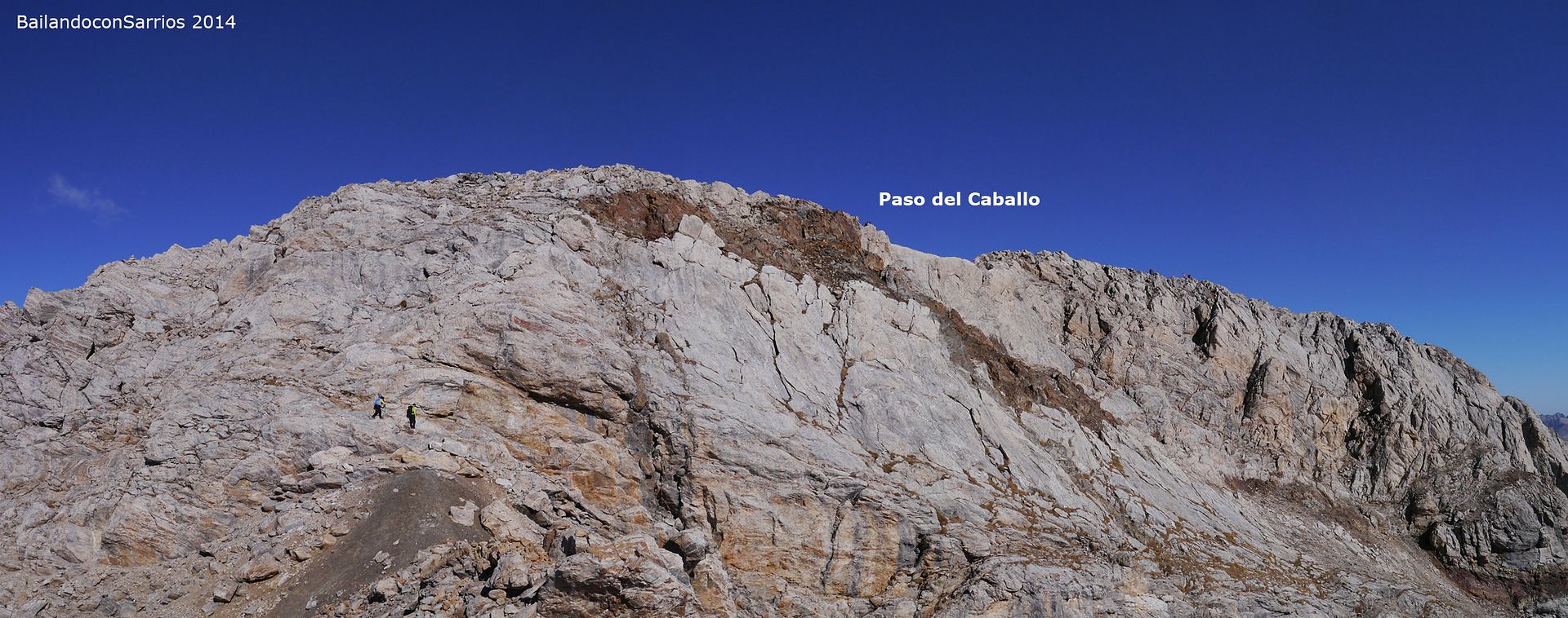 La cresta entre ambas cumbres discurre por el famoso "Paso del Caballo", una arista afilada de unos 20 metros de longitud, de grado I+, con caída a ambos lados, pero objetivamente muy segura si se pasa como su propio nombre indica, a caballo o bien en bavaresa, cuando carece de nieve.