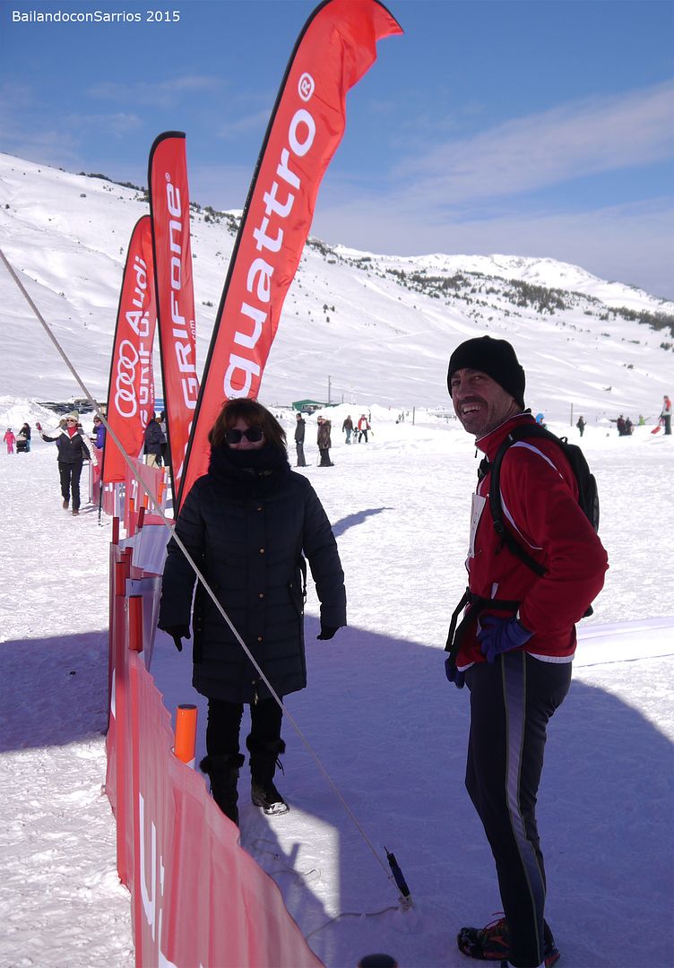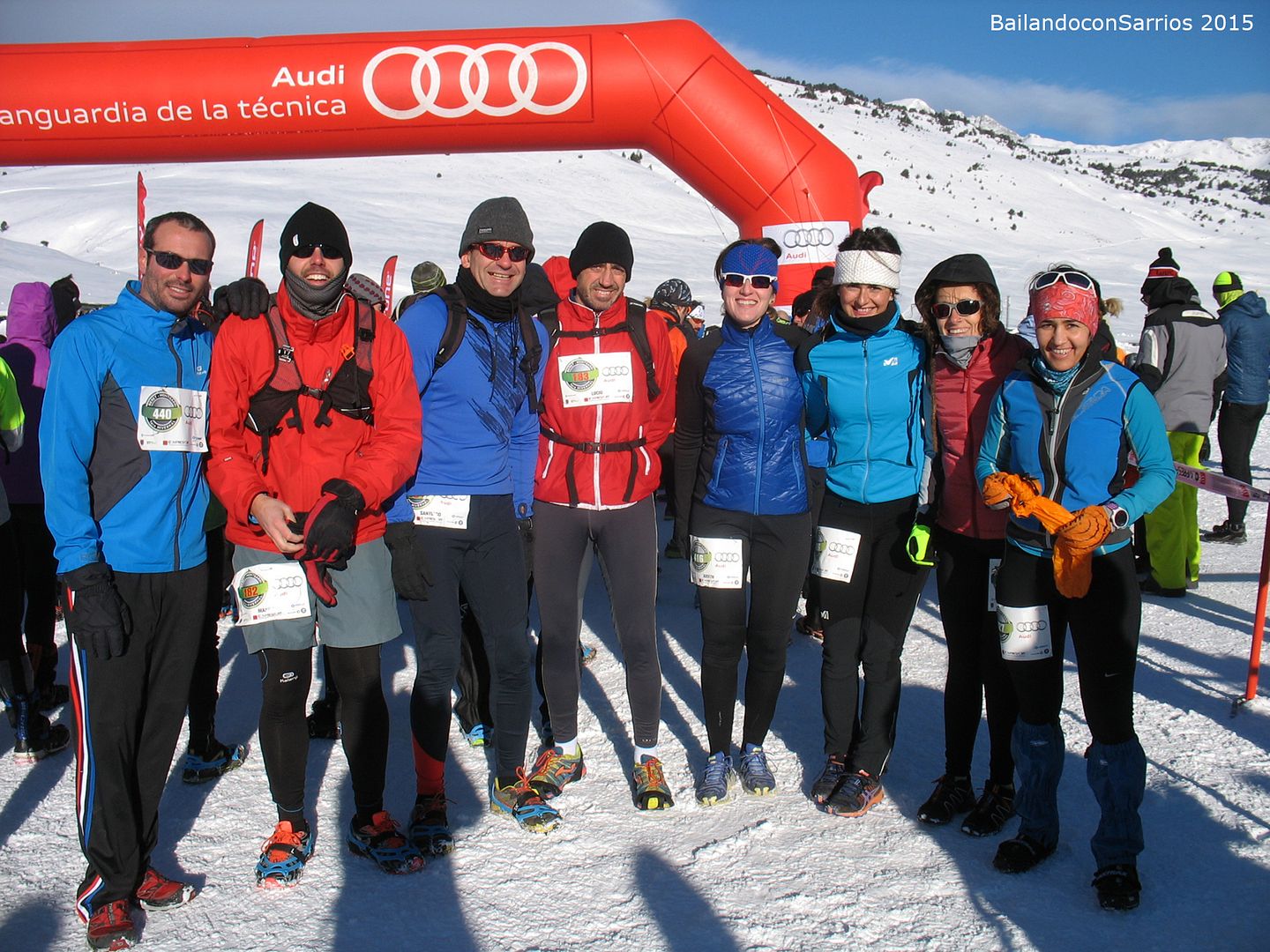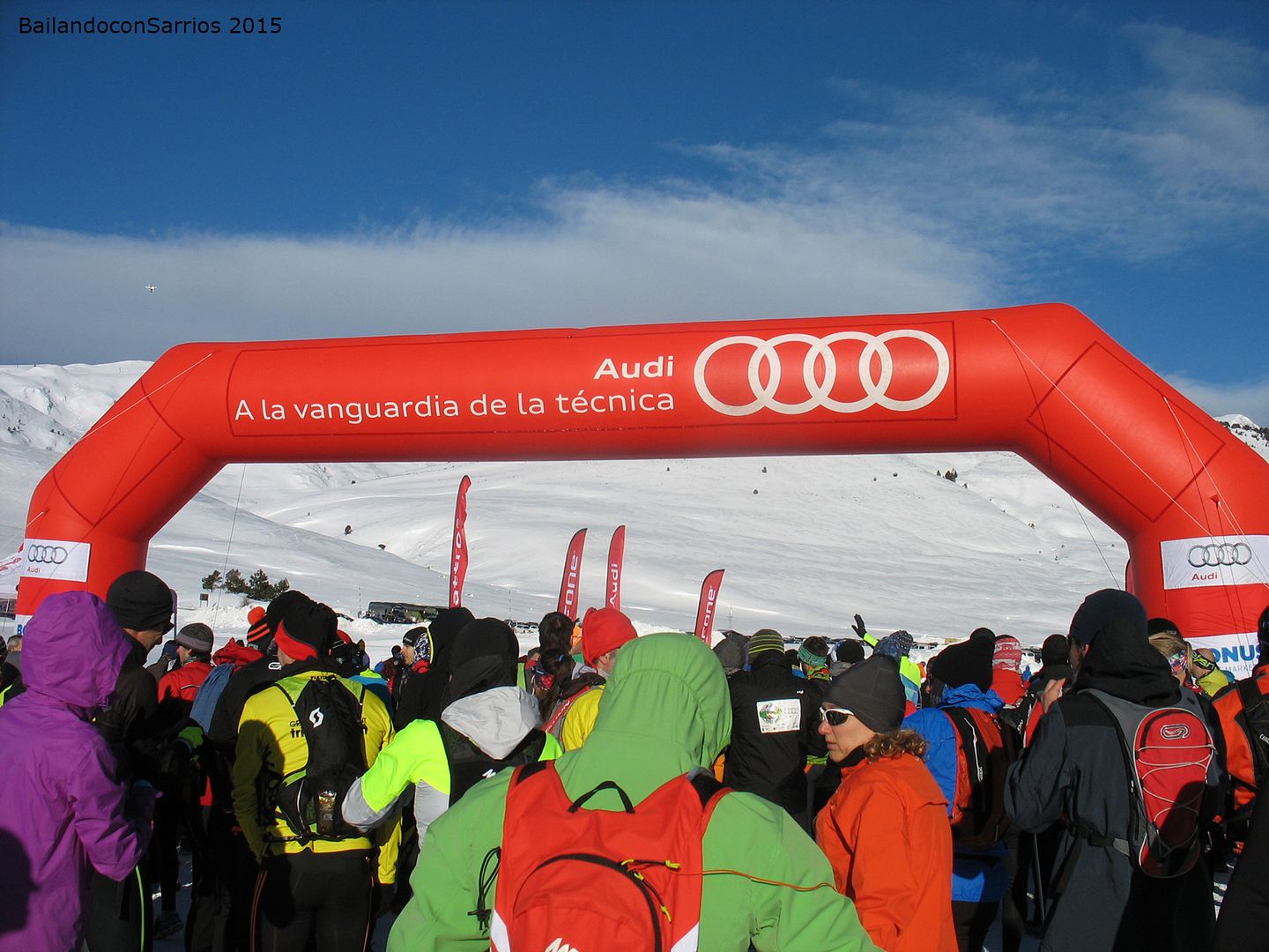 Posponemos la hora de salir de la furgoneta hasta que el sol alcanza el aparcamiento y tras equiparnos con todo, marchamos al trote para intentar calentar un poco hasta la línea de salida, donde el ambiente es ya una fiesta.