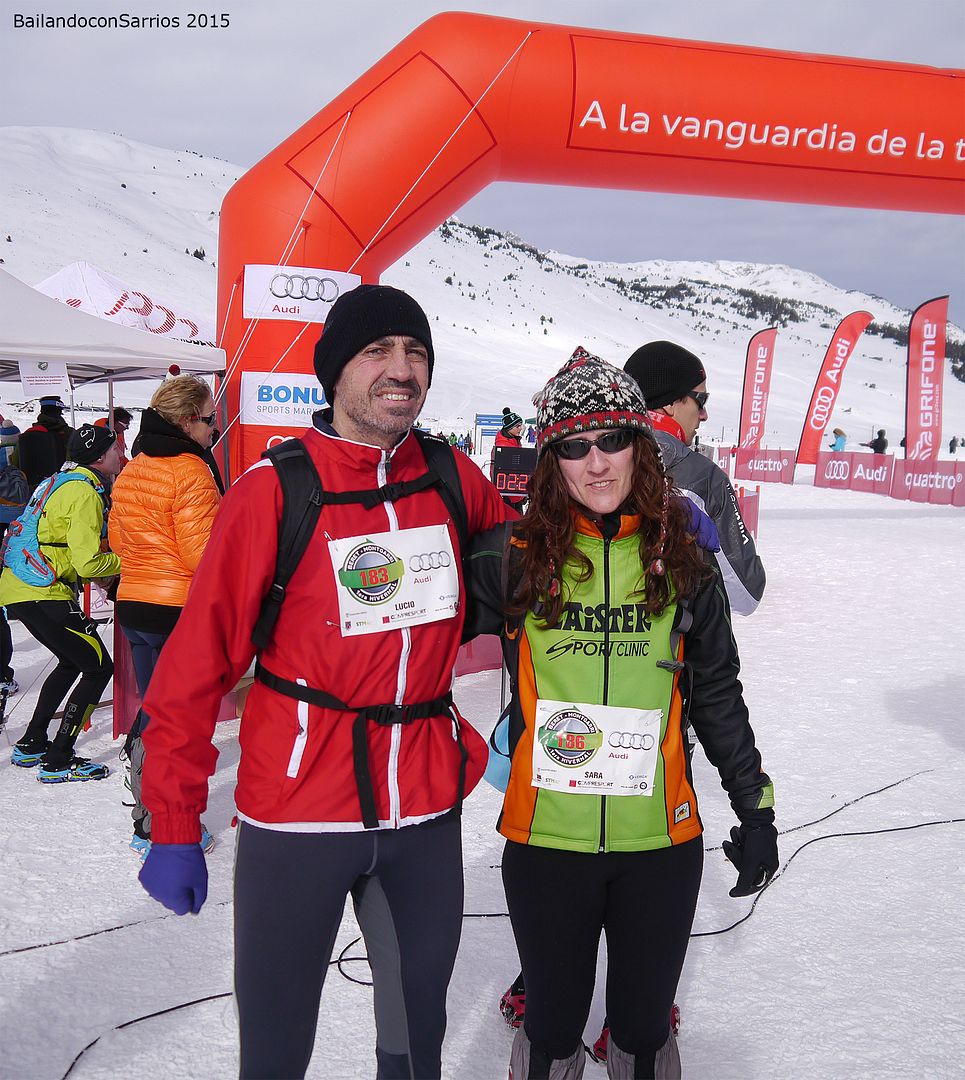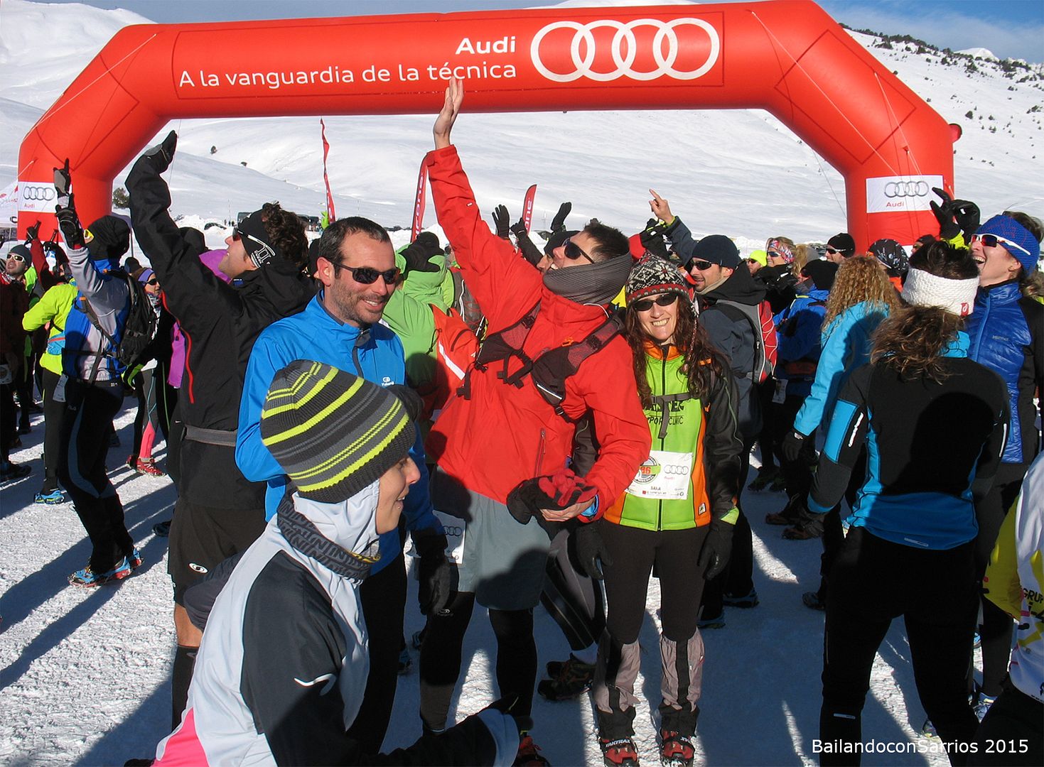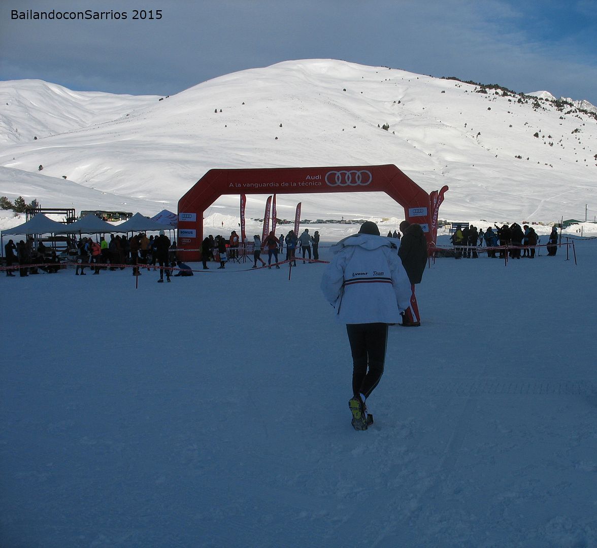 Posponemos la hora de salir de la furgoneta hasta que el sol alcanza el aparcamiento y tras equiparnos con todo, marchamos al trote para intentar calentar un poco hasta la línea de salida, donde el ambiente es ya una fiesta.