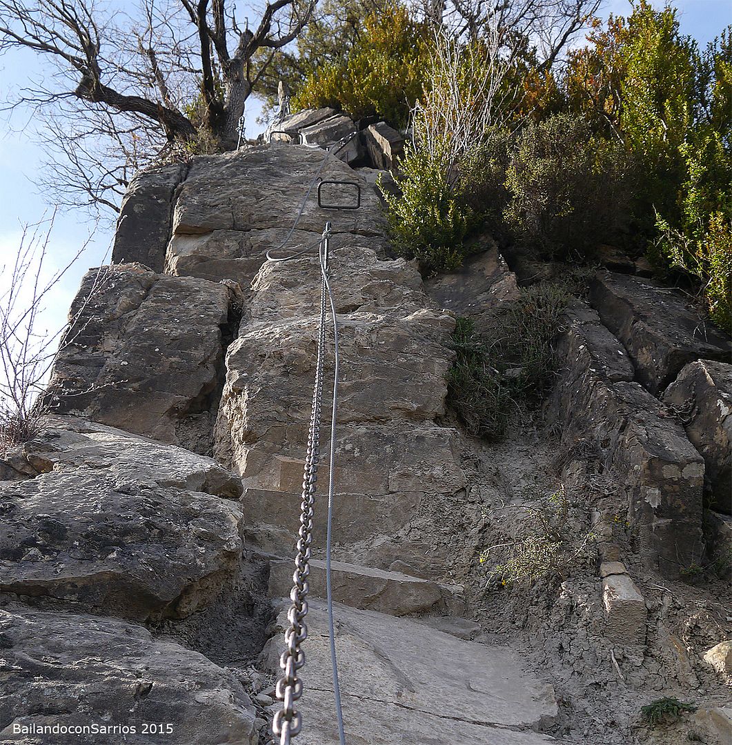 ... trepando con ayuda de cadenas...