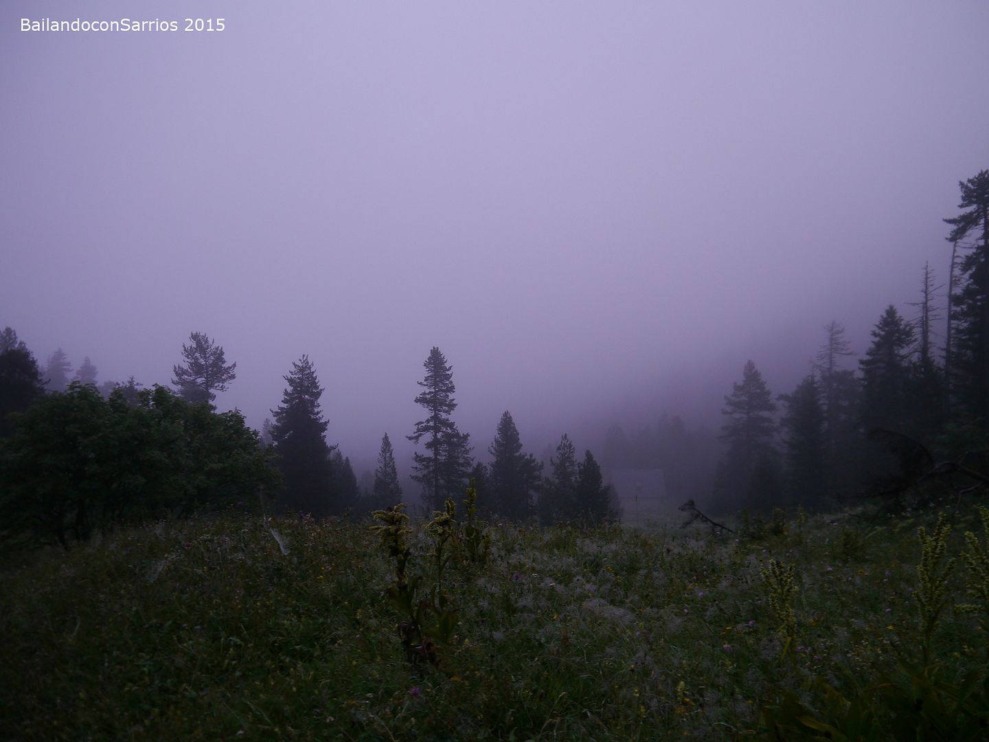La meteo no es favorable, salimos de Bossòst con el cielo cubierto y cuando llegamos al punto de partida junto a la Bòrda de Lacreu está lloviendo ligeramente... hacemos algo de tiempo y a las 06:50 AM por fin nos decidimos a salir, ya que hemos venido, al menos tendremos que intentarlo.
