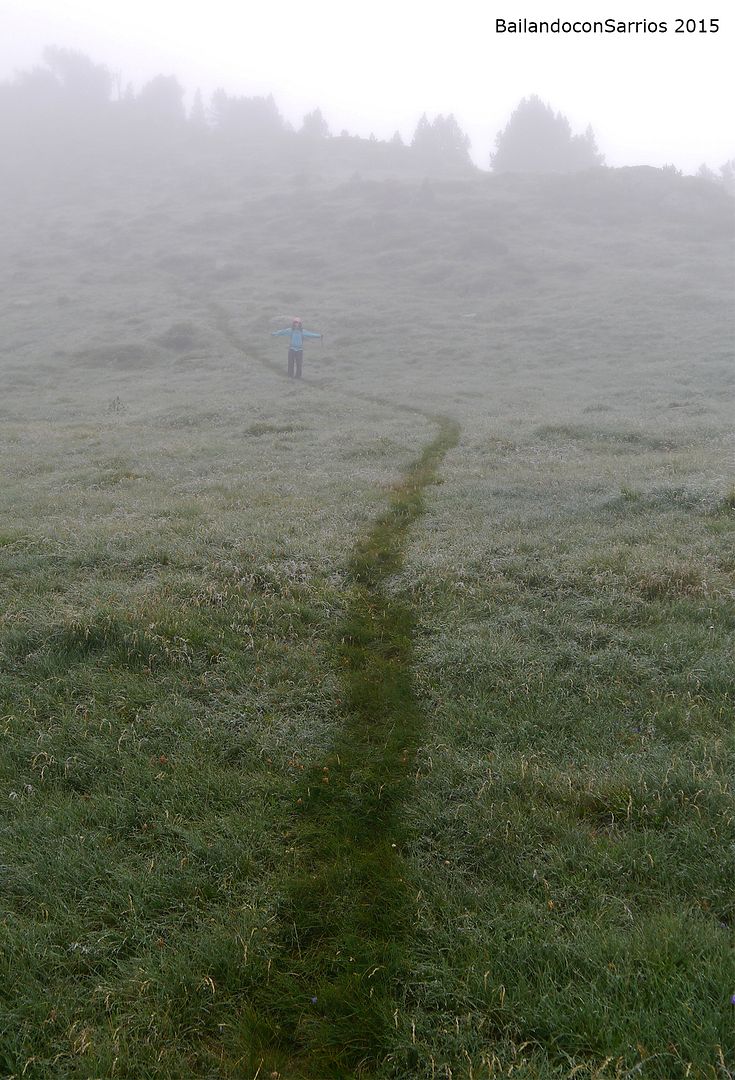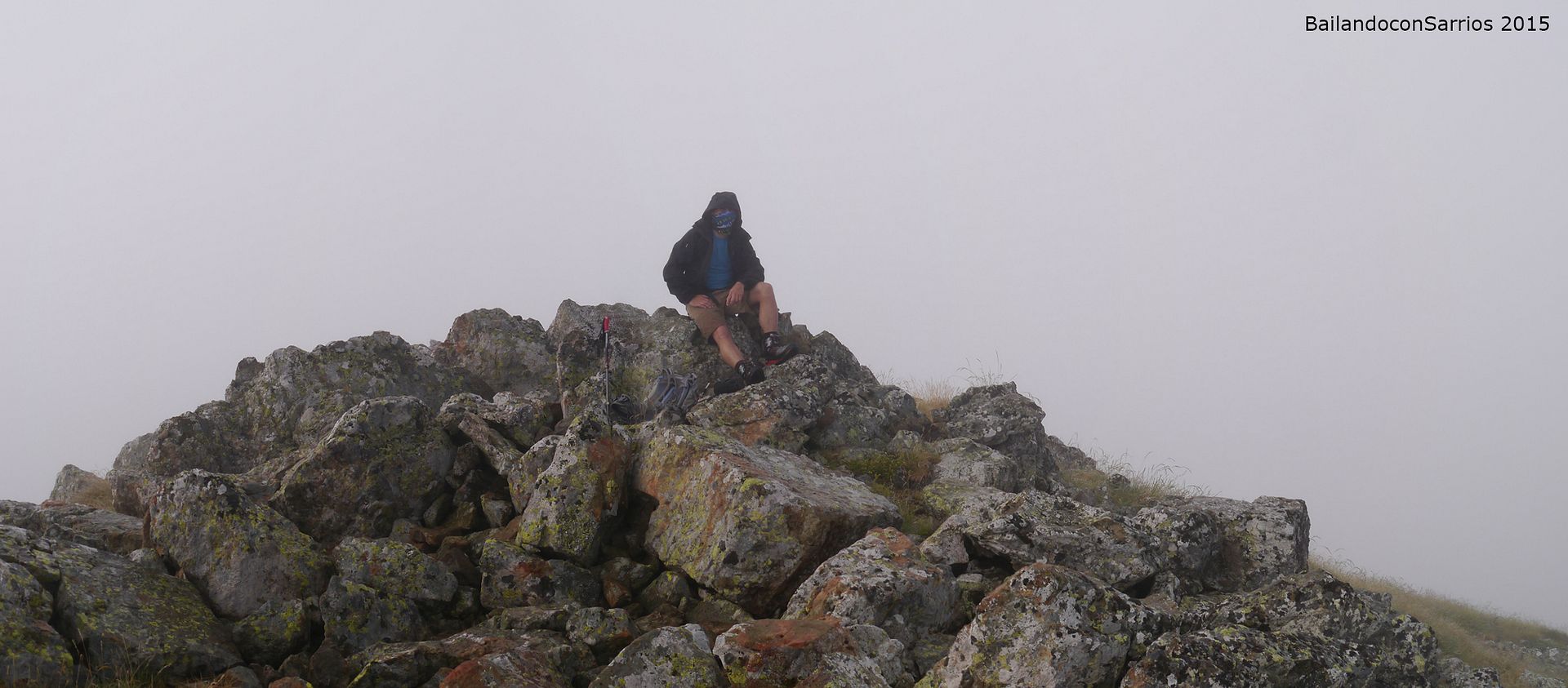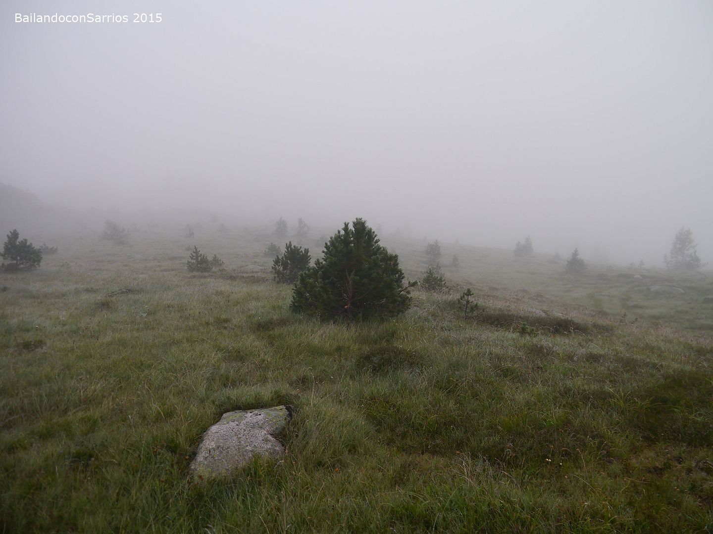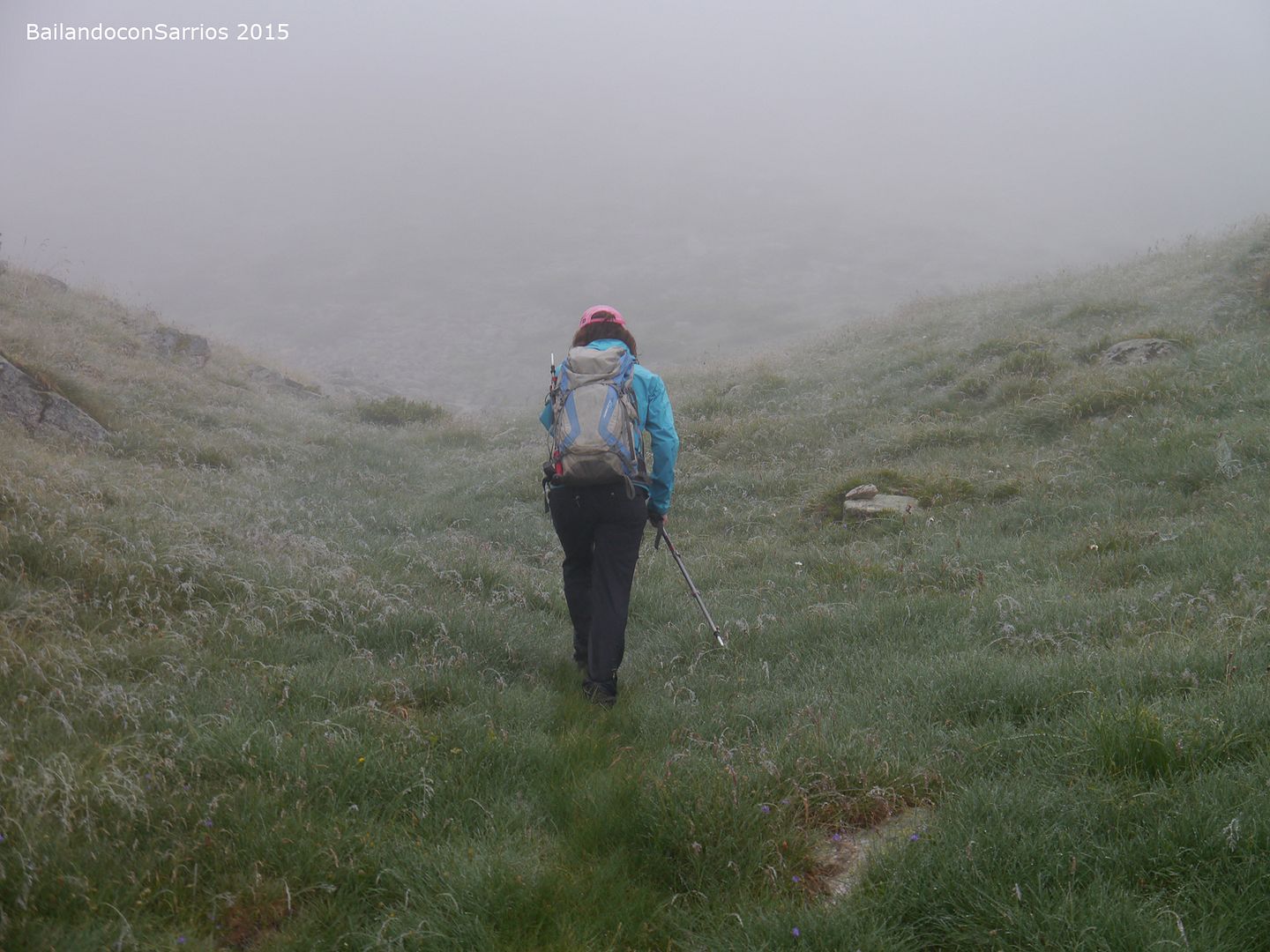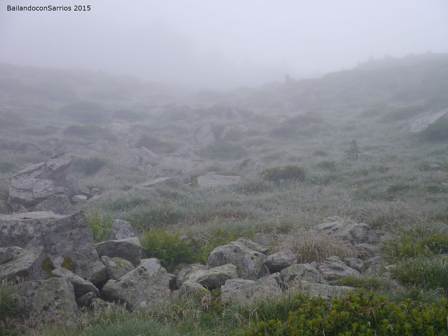 La densa niebla no ayuda mucho, a estas alturas tendríamos que estar viendo la espectacular vertiente Norte de nuestro objetivo de hoy... suerte que el track en el smartphone nos ayuda a orientarnos para intentar enlazar con la cresta NO hasta la cima.