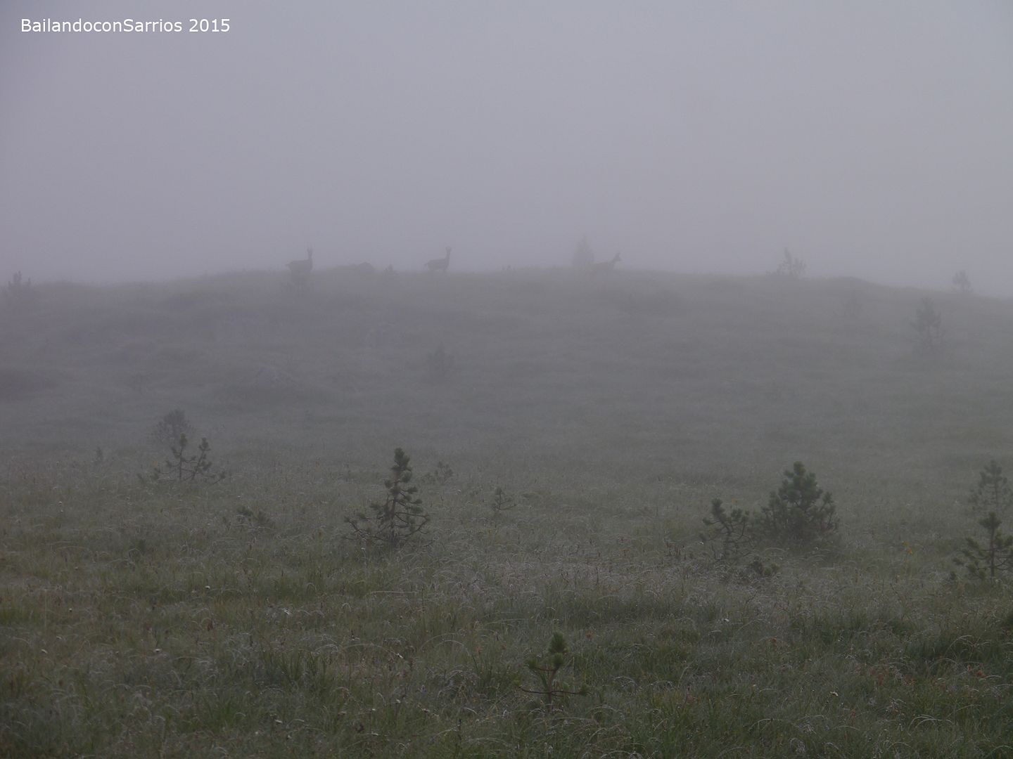 ... tres preciosos sarrios (Rupicapra pyrenaica) entre la niebla.