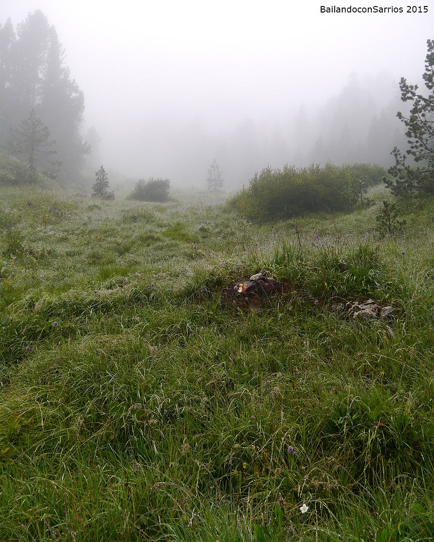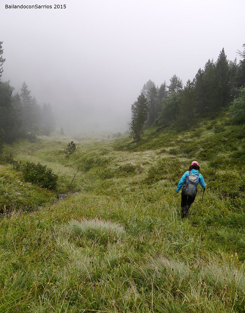 Vamos descendiendo siguiendo los rastros de senda... nos desviamos de la traza de subida pero, a cambio, alcanzamos los denominados Corraus d'Espanha, desde donde podremos descender mucho más cómodamente hasta el punto de partida.