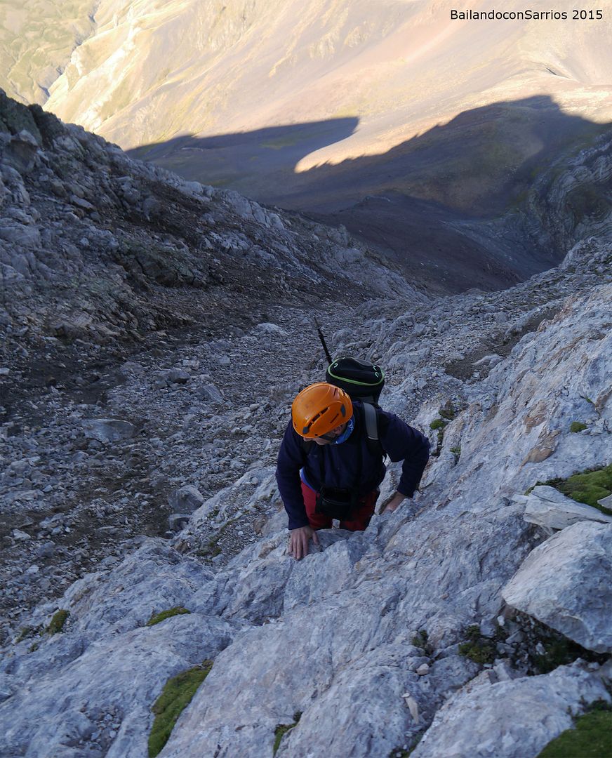 Pasos de grado II en la famosa vira alternativa del Paso del Caballo existente en la vertiente Sur del mismo.