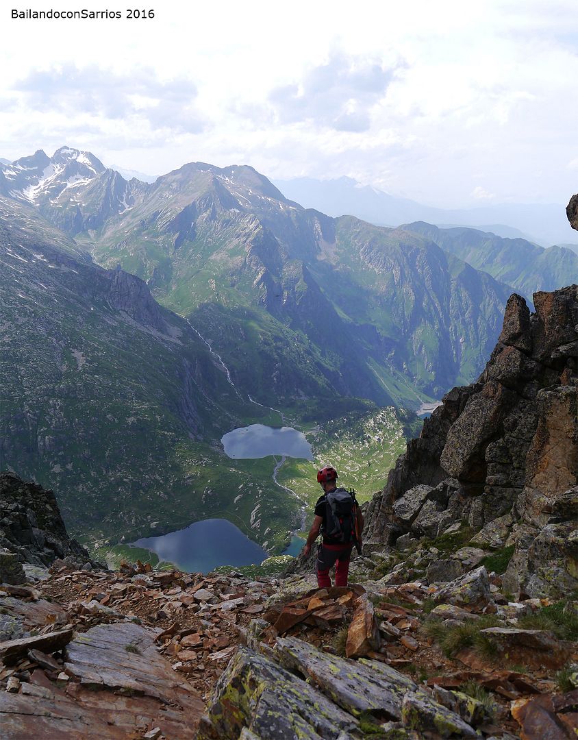 Pasos de grado II durante el ascenso por las chimeneas y en la cresta hasta la cima del Grand Quayrat.