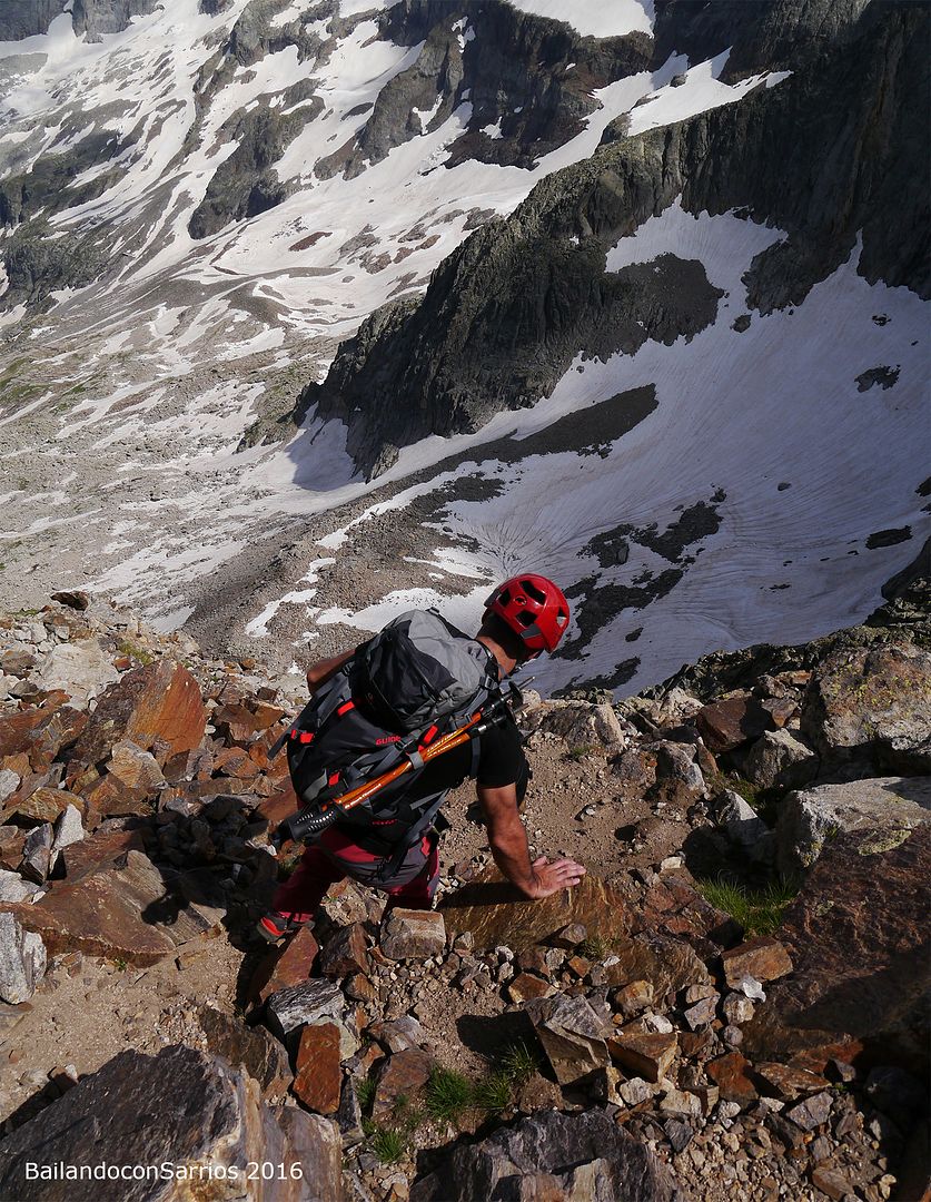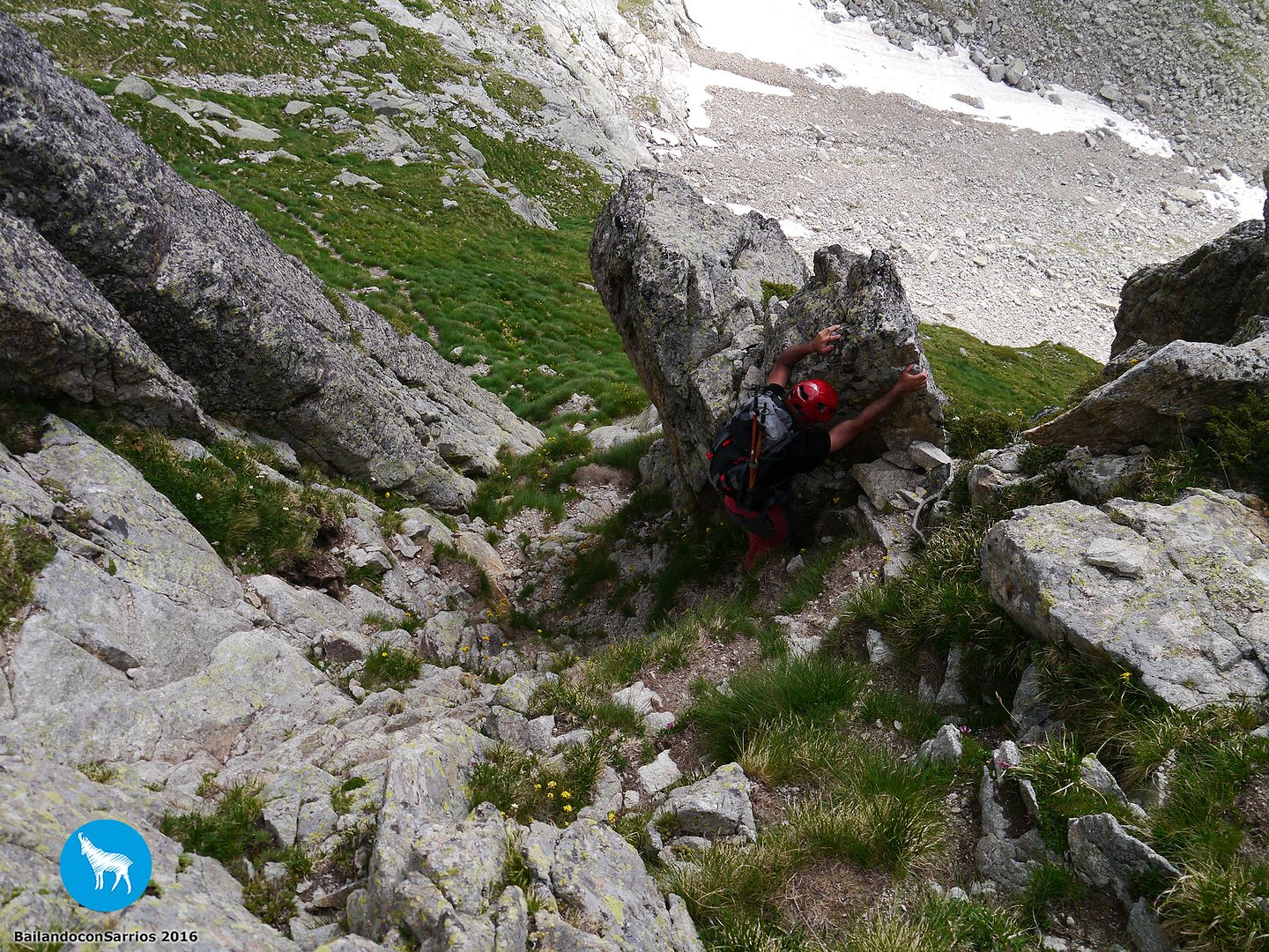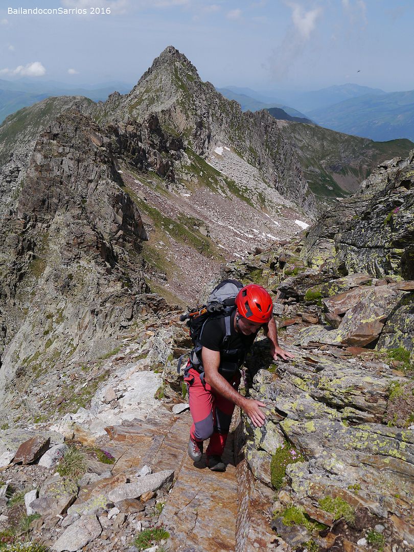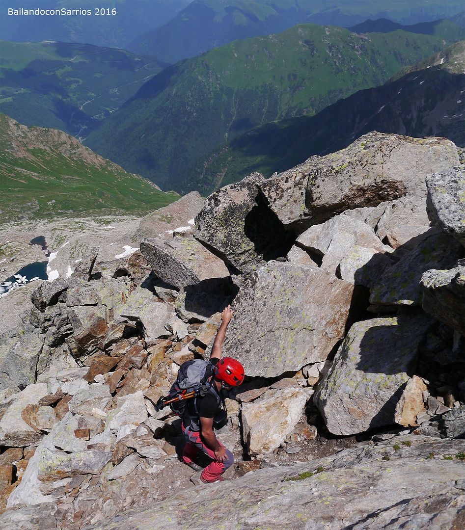 Pasos de grado II durante el ascenso por las chimeneas y en la cresta hasta la cima del Grand Quayrat.