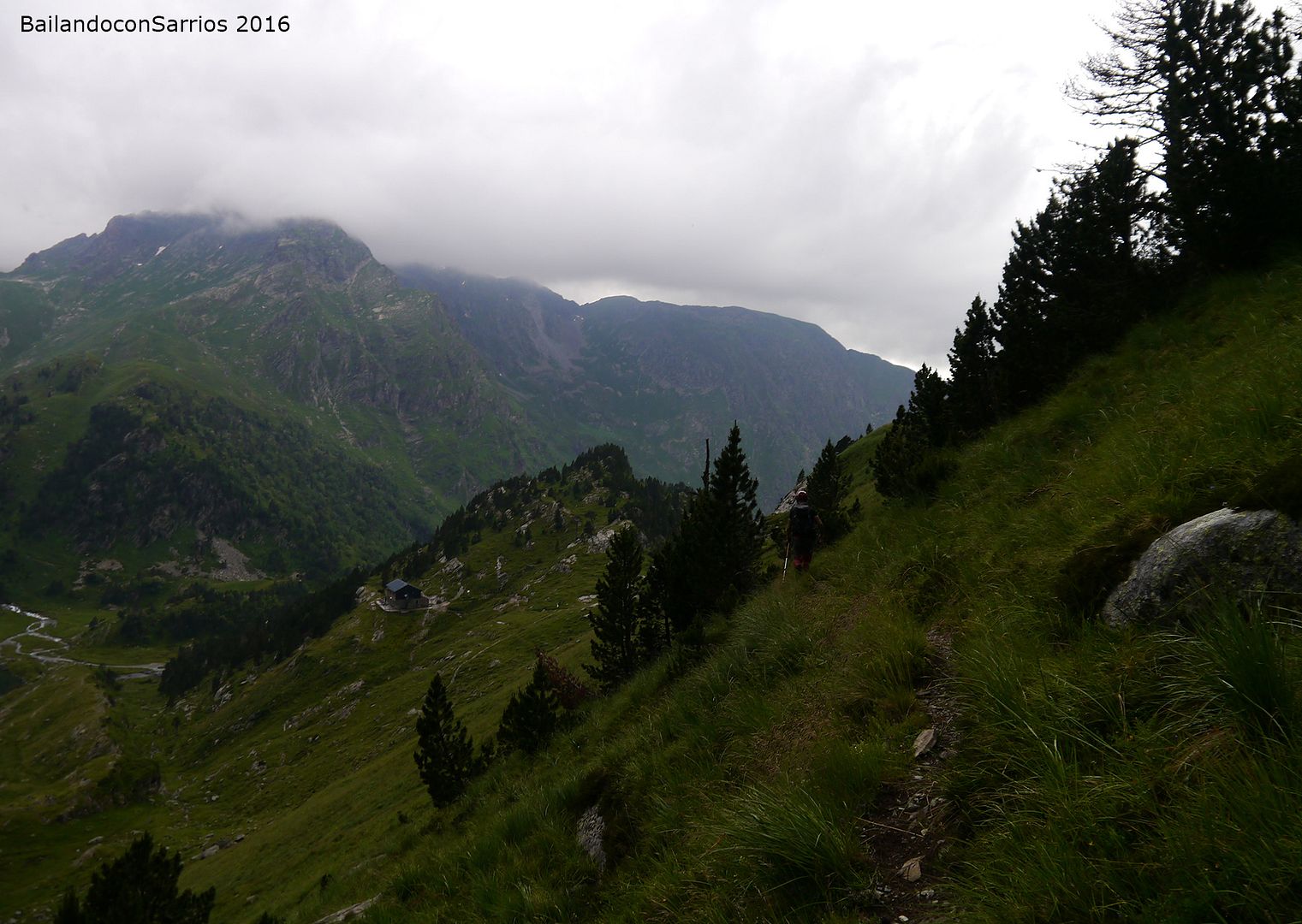 Hemos "sobrevivido" (con algún que otro culetazo) al sendero cubierto de hierba mojada pero la tercera tormenta se aproxima hacia nosotros... lo cierto es que ni nos planteamos pararnos en el refugio hasta que pase, mejor descender cuanto antes hasta el coche.
