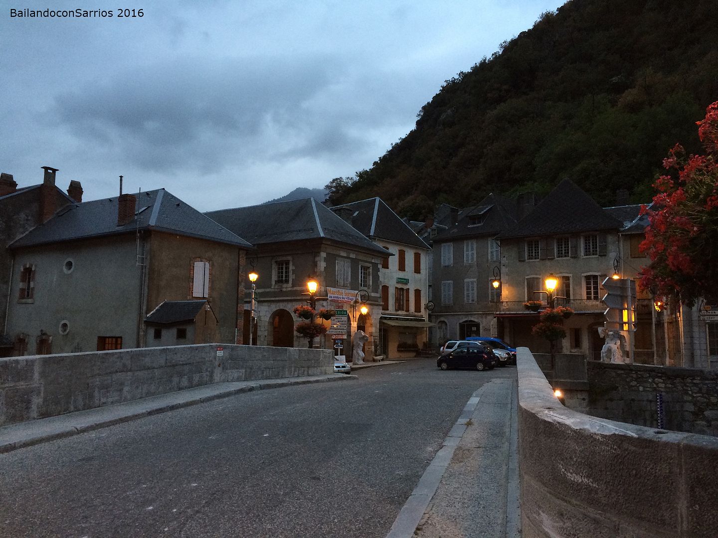 Antes de salir de Saint Béat, empiezo a notar que la bici me pesa... otro pinchazo de mi cámara trasera, justo lo que nos faltaba para llegar completamente de noche.