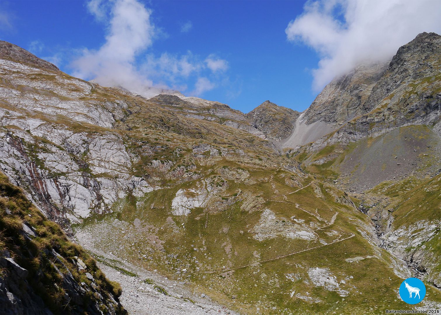 Continuamos ascendiendo y en seguida nos plantamos en el desvio al Refugio de Bayssellance, nos queda poco para dejar todos los trastos y para ir más ligeros en busca del Petit Vignemale.