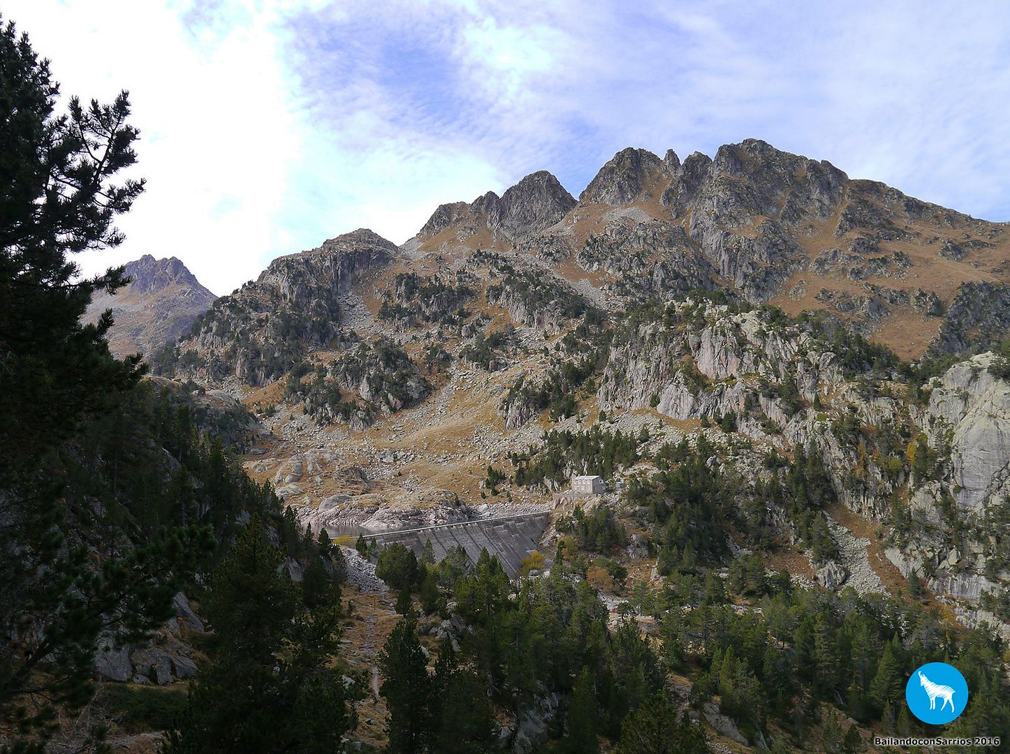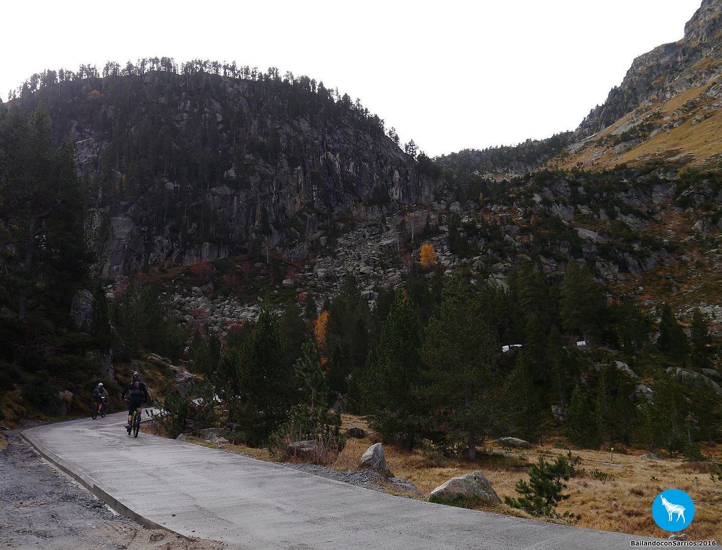 Recorremos la pista hasta alcanzar el denominado Aparcamiento del Guarda del Refugi de Colomèrs, donde dejamos el coche y terminamos de prepararnos las mochilas con algo más de abrigo en este día de otoño.
