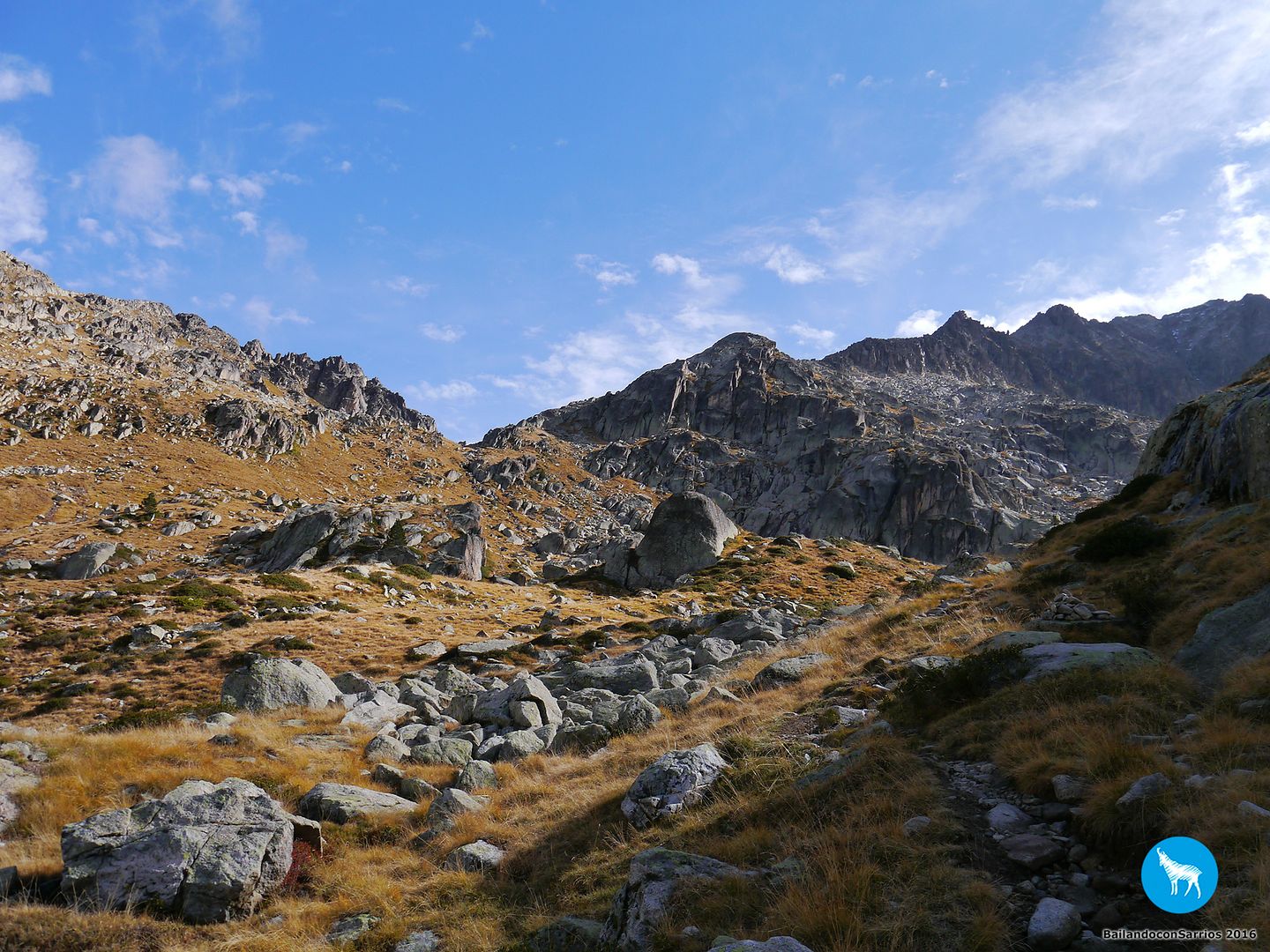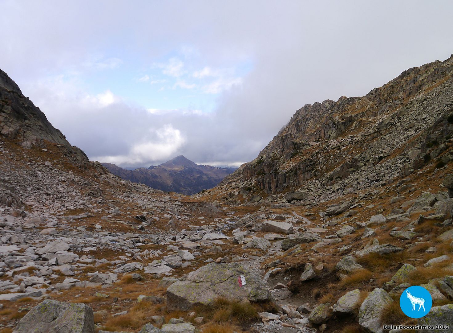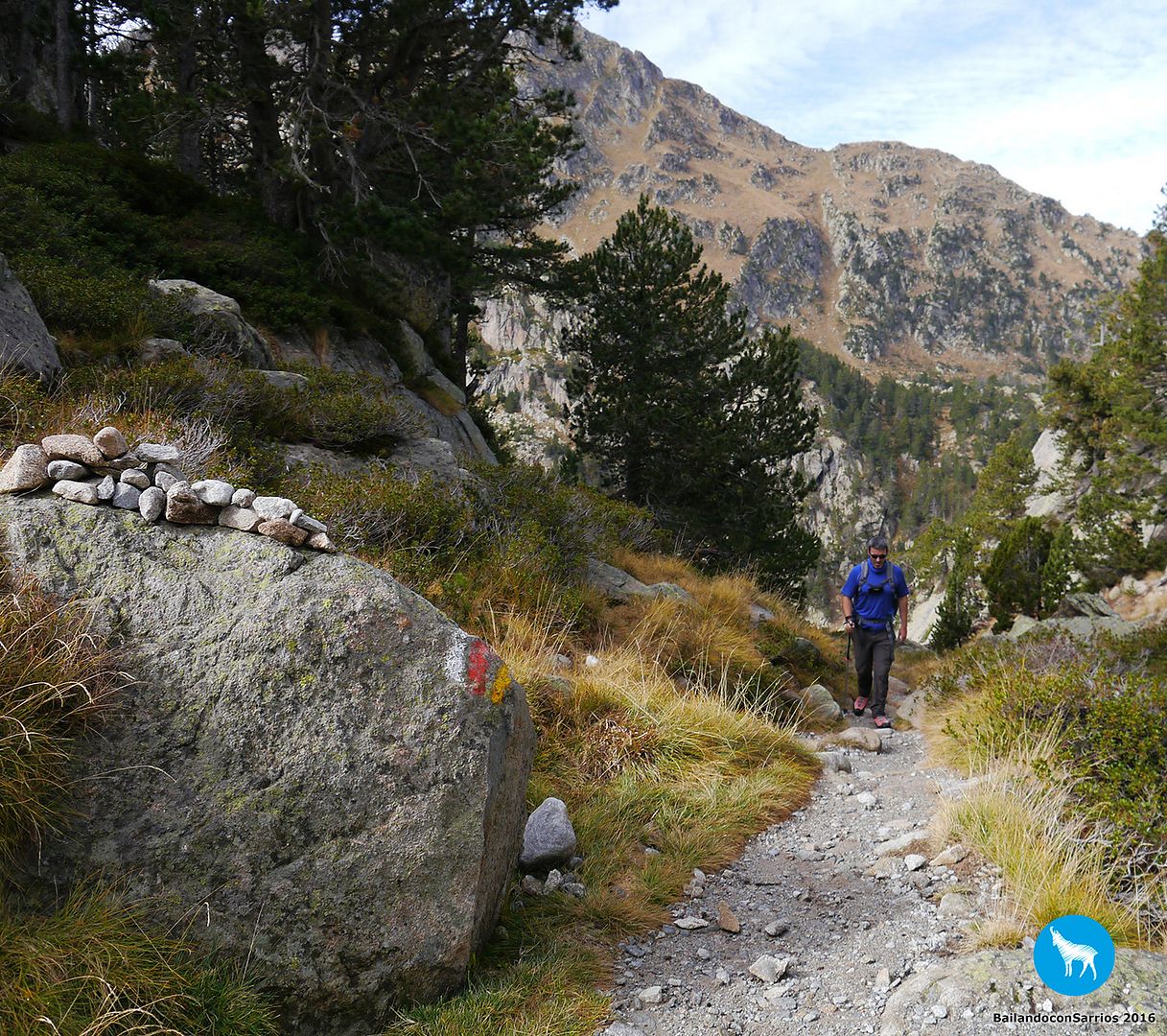 Nosotros hemos de seguir en dirección al Refugi d'Amitges siguiendo el GR 11 y parte del circuito del Circ de Colomèrs... si estuviéramos realizando el recorrido de CARROS DE FOC, tendríamos que continuar en dirección al Còth de Sendrosa y al Refugi de Saboredo.
