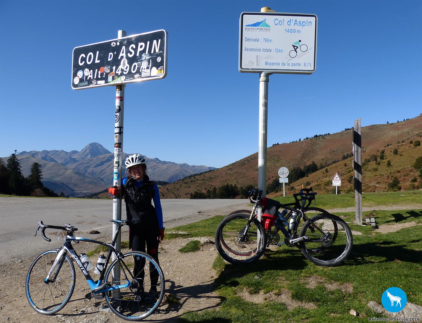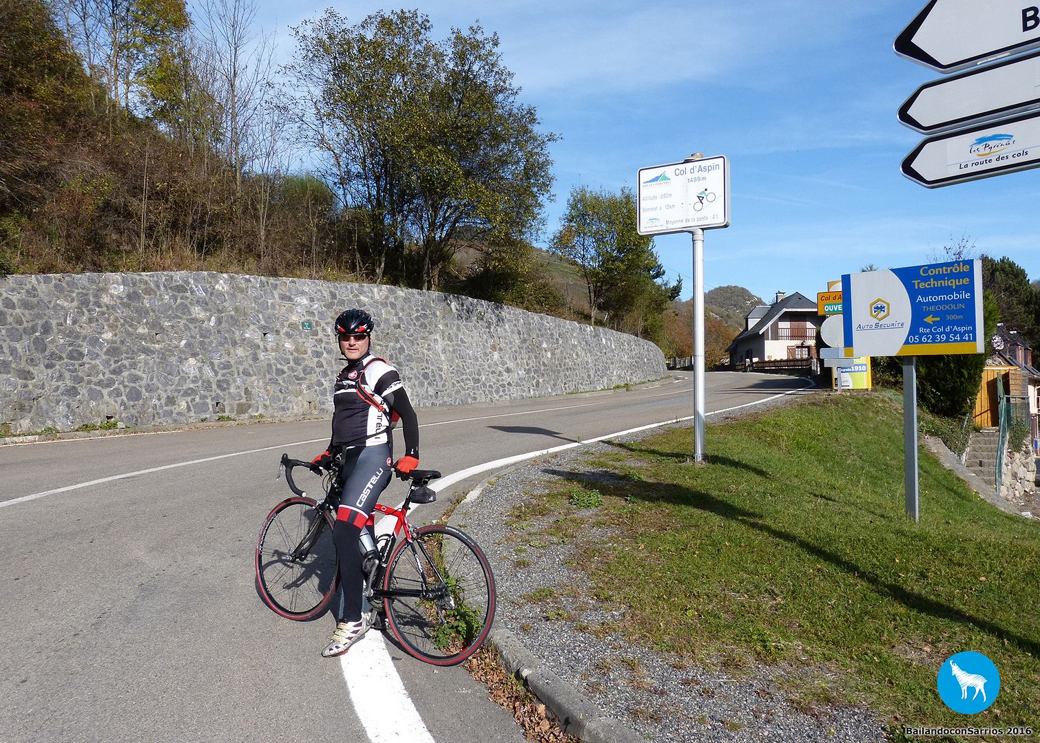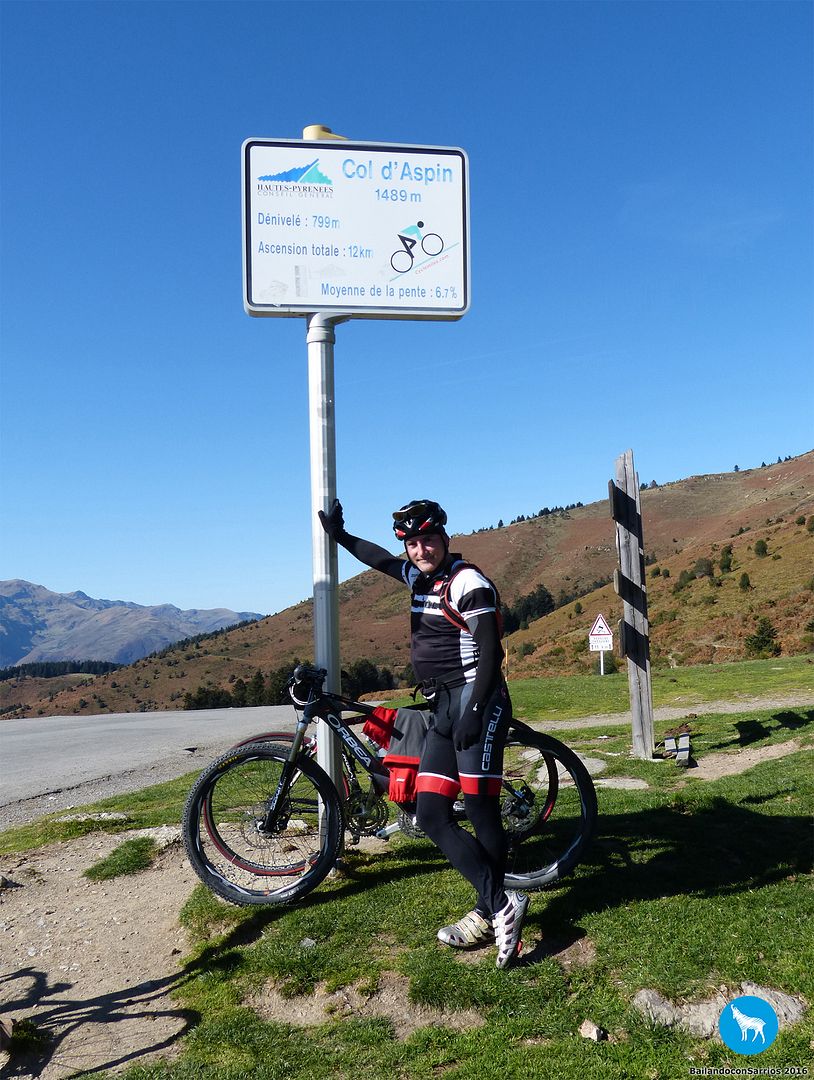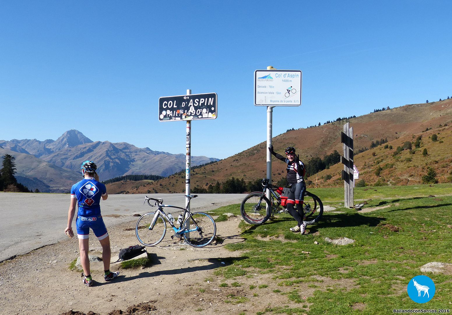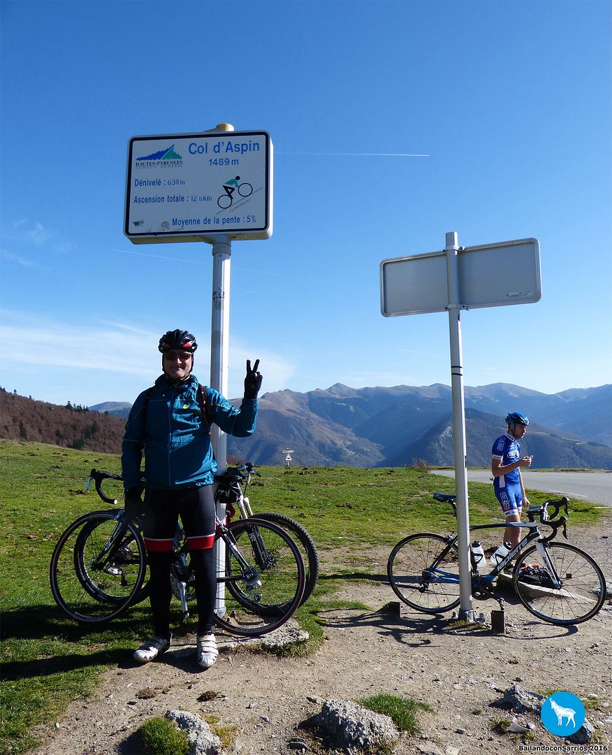 Son las 12:15 PM cuando alcanzamos el Col d'Aspin... los dos primeros ciclistas que nos han adelantado nos saludan, supongo que porque voy con mountain bike y porque soy una fémina... :)