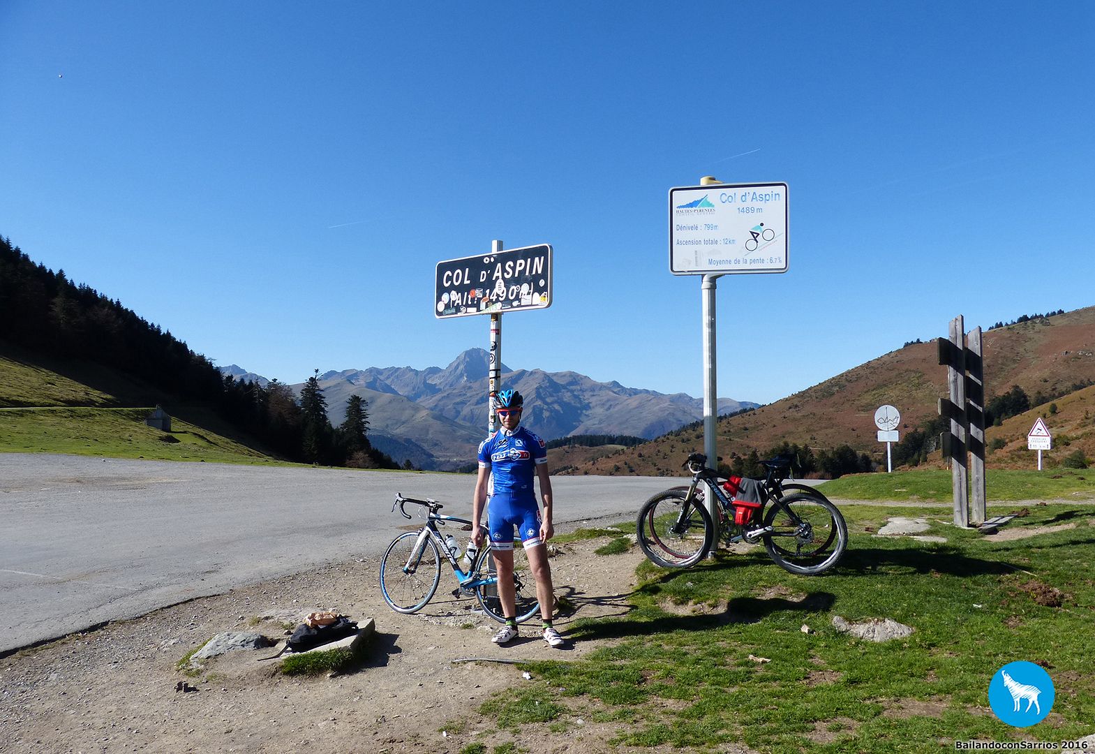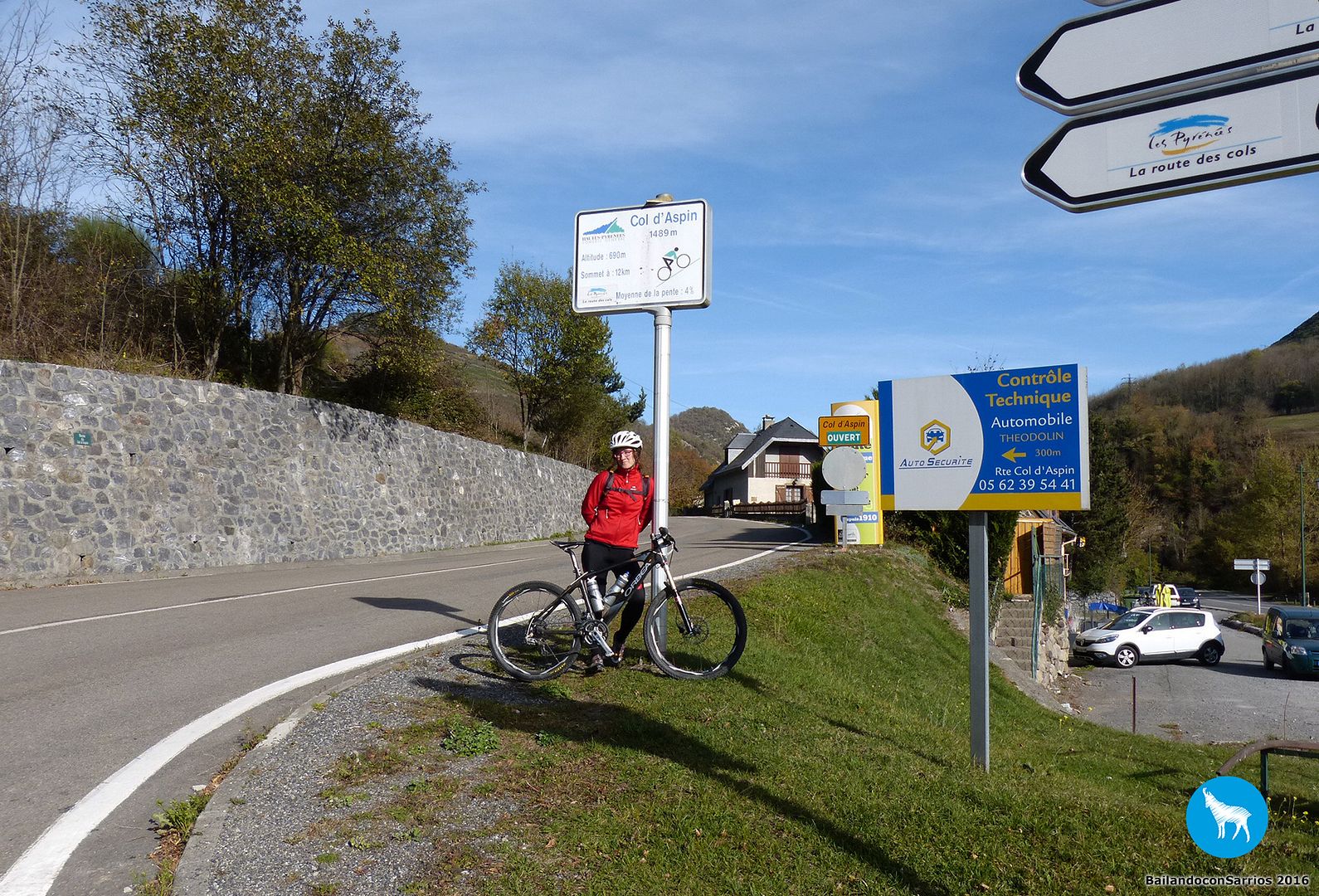 Son las 12:15 PM cuando alcanzamos el Col d'Aspin... los dos primeros ciclistas que nos han adelantado nos saludan, supongo que porque voy con mountain bike y porque soy una fémina... :)
