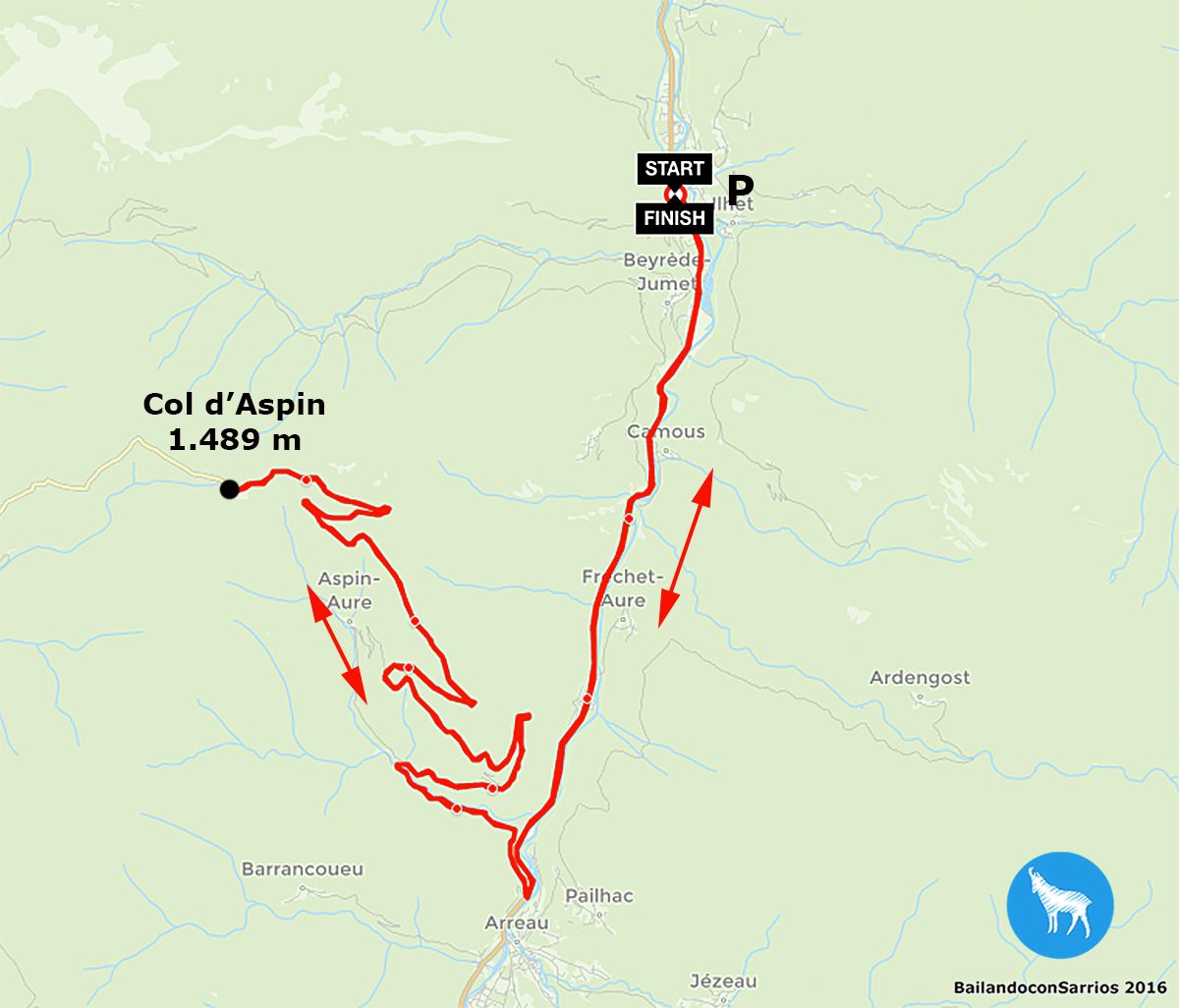 Un recorrido para realizar en bicicleta de carretera más que en mountain bike... desde Sarrancolin (France) pasando por Arreau (France), donde comienza el propio Col d'Aspin, y de ahí hasta la cima, donde disfrutaremos de unas vistas excepcionales del PIC DU MIDI DE BIGORRE.