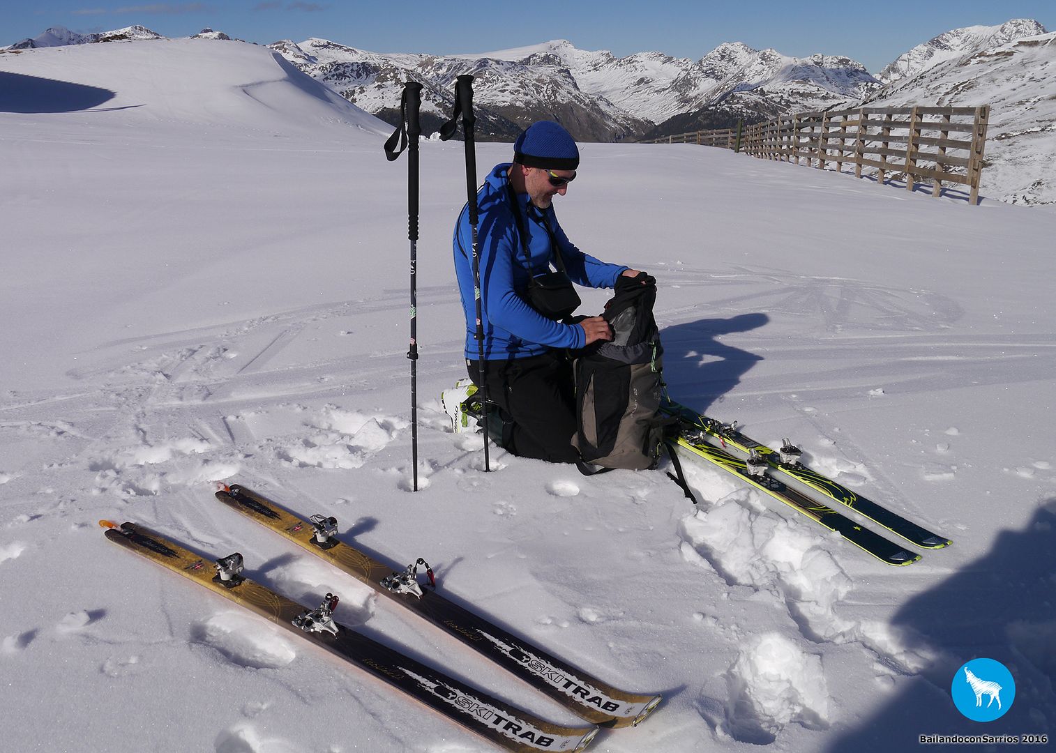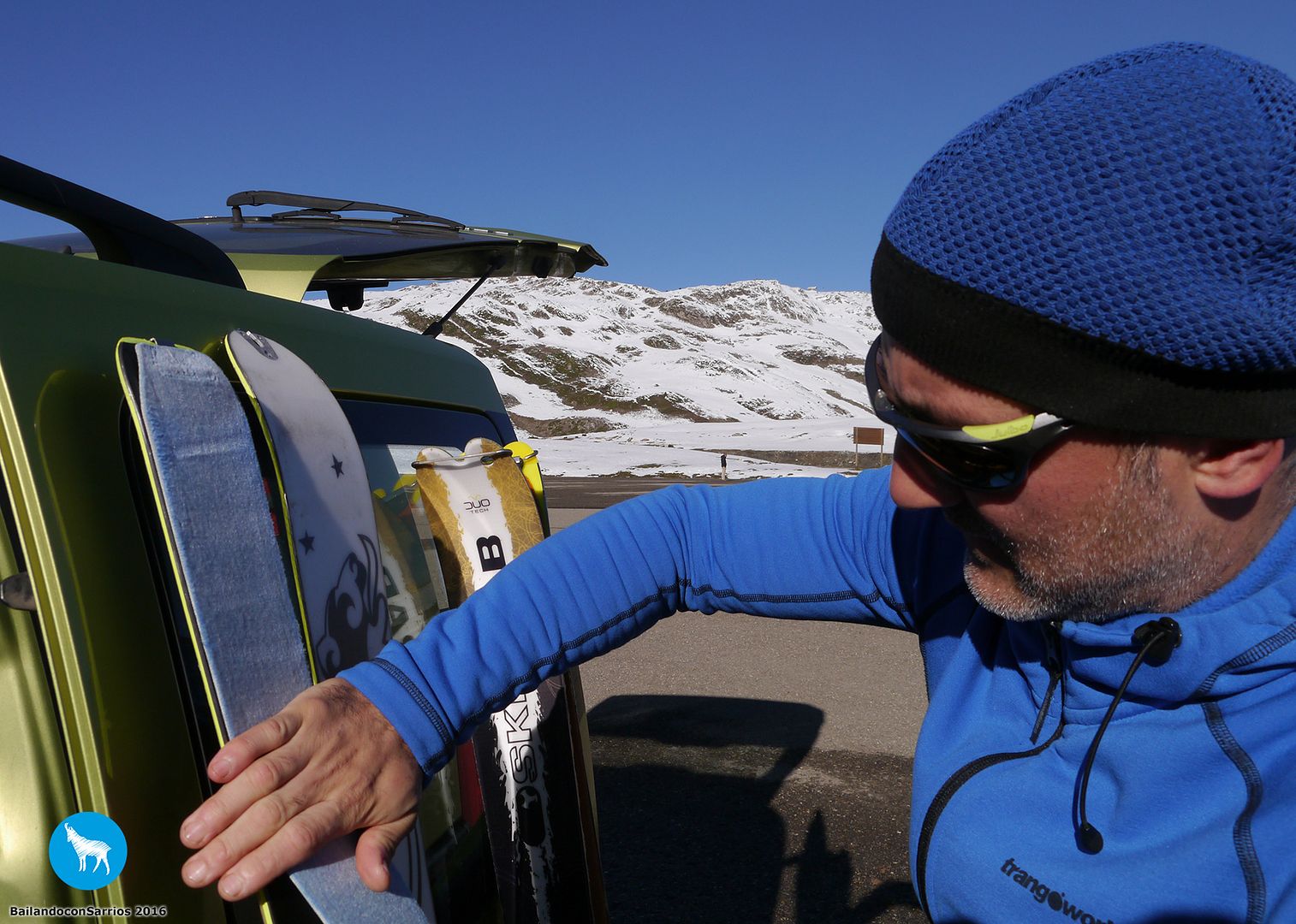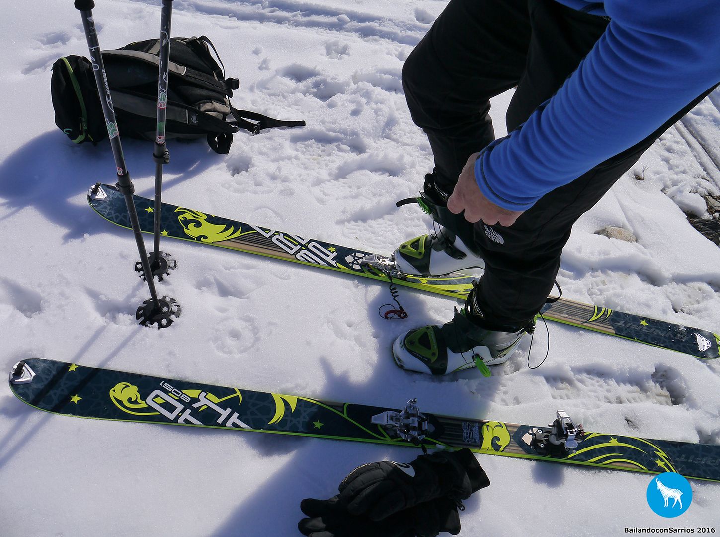 El segundo momentazo del día, colocarnos bien las botas (Dynafit TLT 5 Mountain) y, sobre todo, colocarlas correctamente en las fijaciones (Dynafit Tlt Speed Radical)... no tiene mucho misterio pero siempre hay una primera vez para todo.