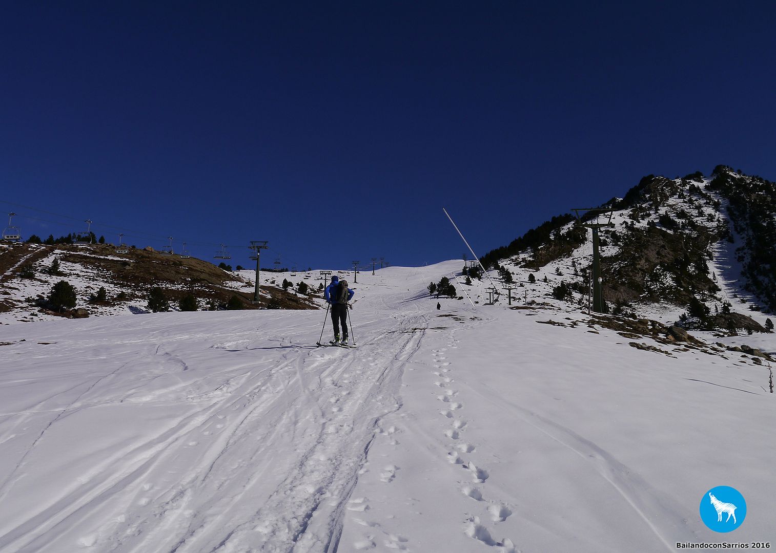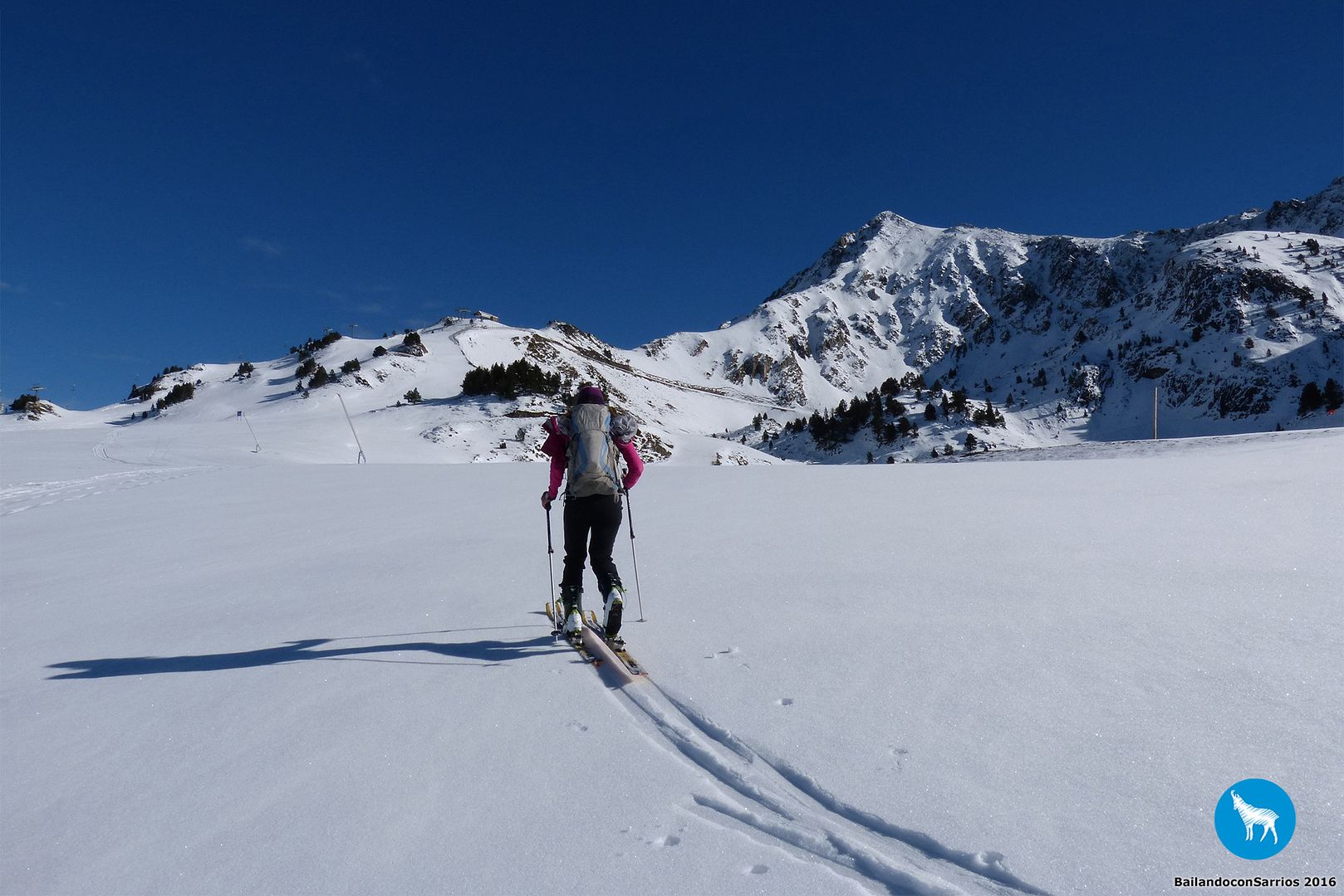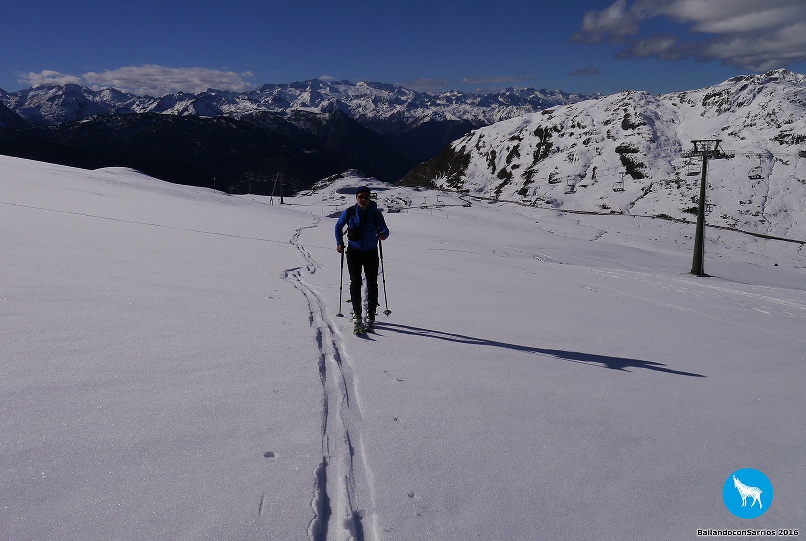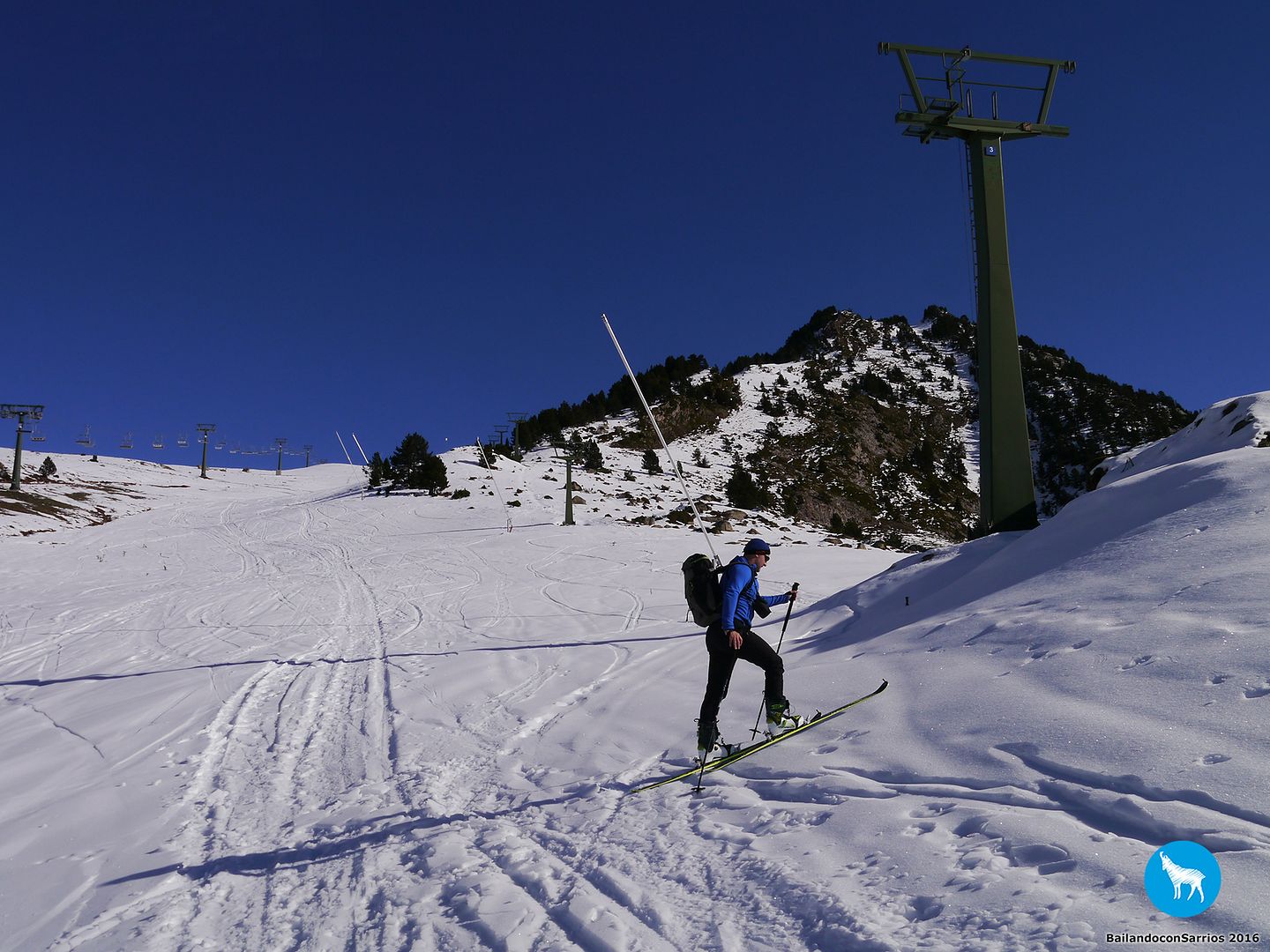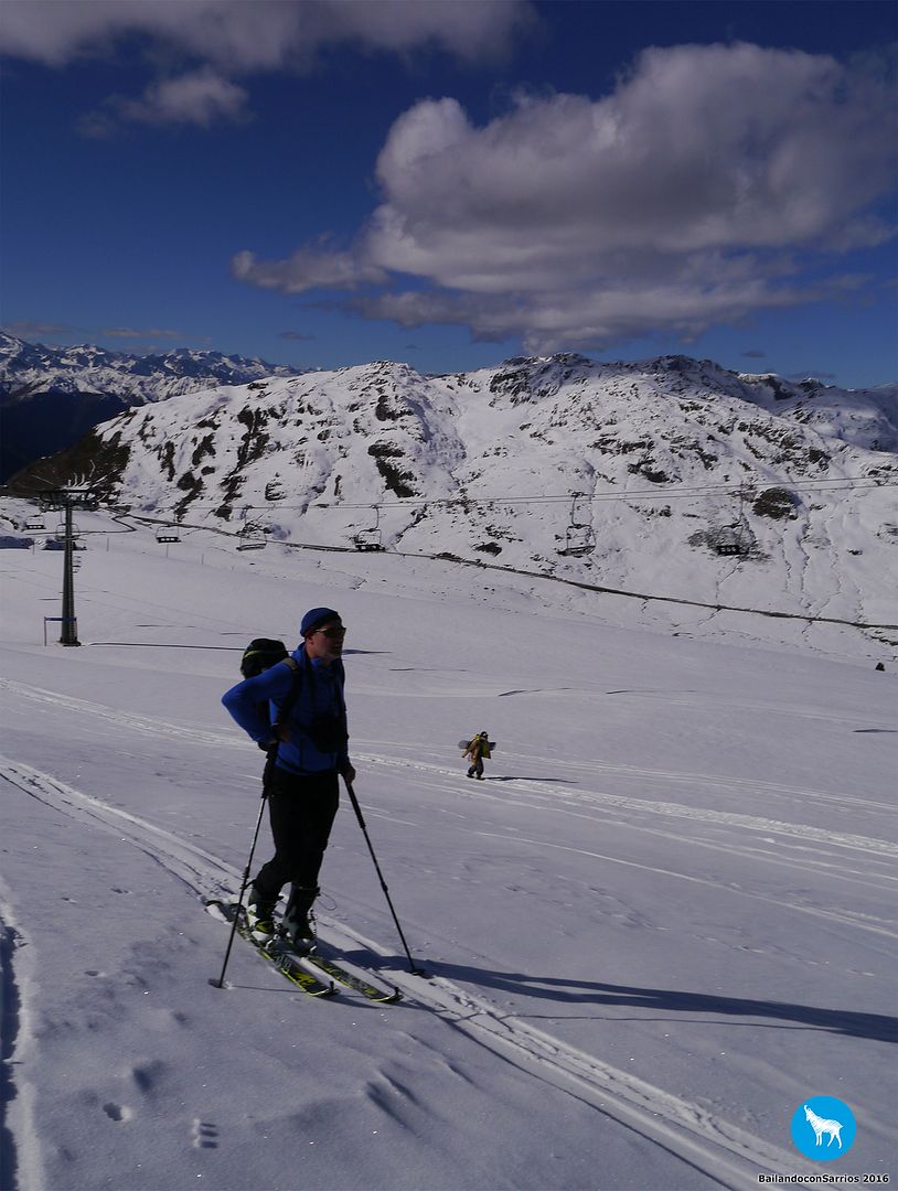 Itinerario de esquí de montaña siguiendo pistas rojas y azules (sin pisar) dentro del dominio esquiable de Baqueira Beret.