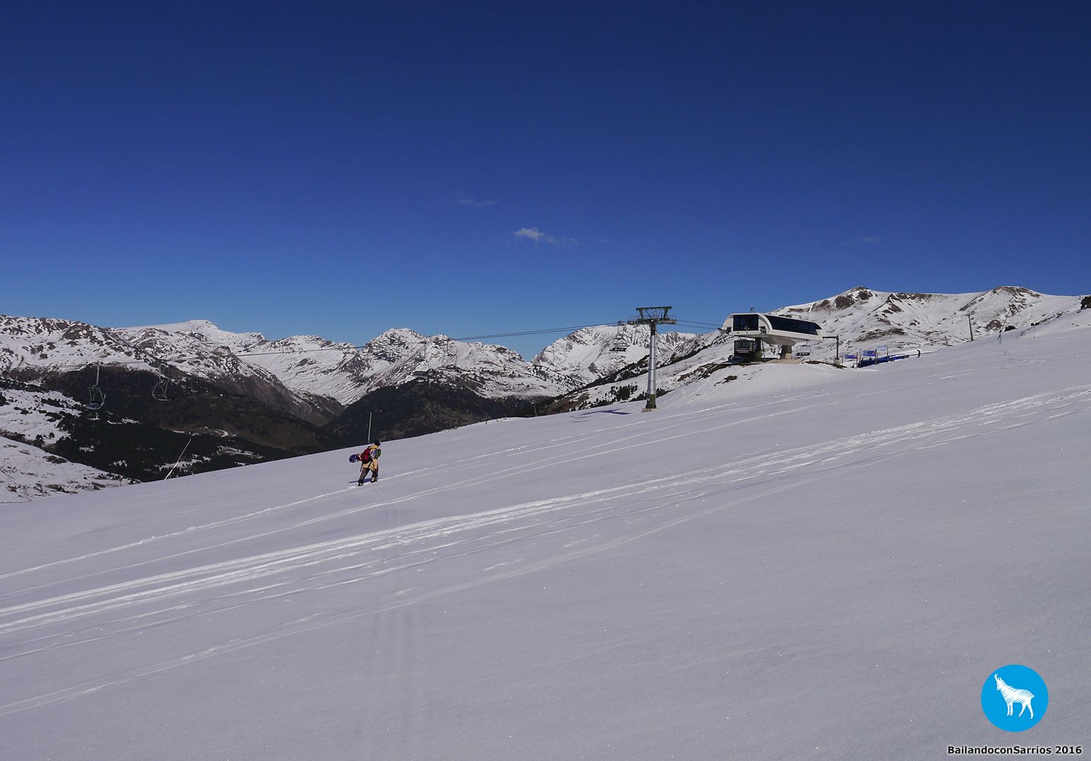 Entre unas cosas y otras el tiempo va pasando y, por fin, a las 11:30 AM conseguimos movilizarnos del aparcamiento... casi todos van al Cap de Baqueira pero, lamentablemente, nosotros hoy tenemos que ser un poco más conservadores.