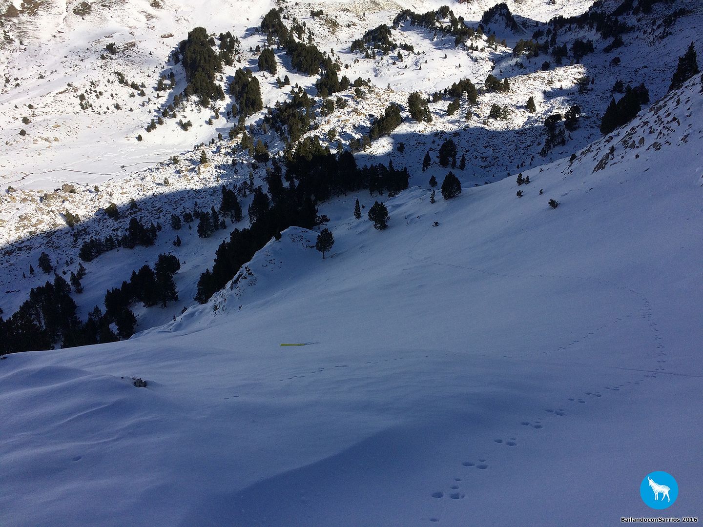 ... las opciones para el descenso, nosotros por Ta Dossau y Dera Reina (azules sin pisar)...