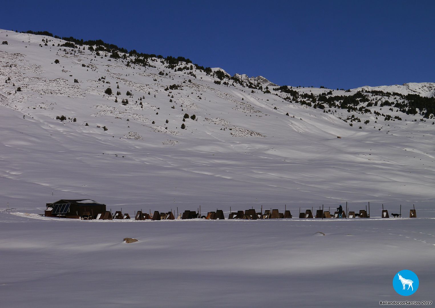 Mientras colocamos las focas en las tablas, escuchamos los ladridos de "nuestros huskys" de MONTGARRI OUTDOOR, mis compañeros de trabajo acaban de empezar su jornada laboral y los huskys están deseando ponerse en marcha... :)