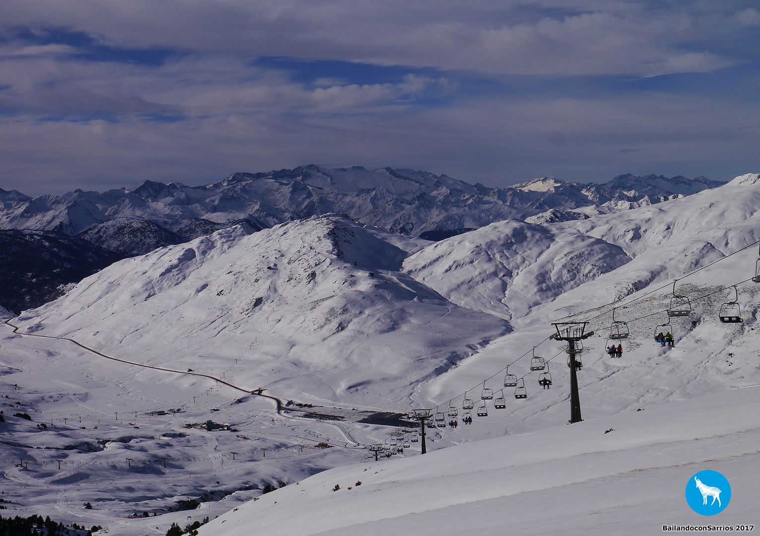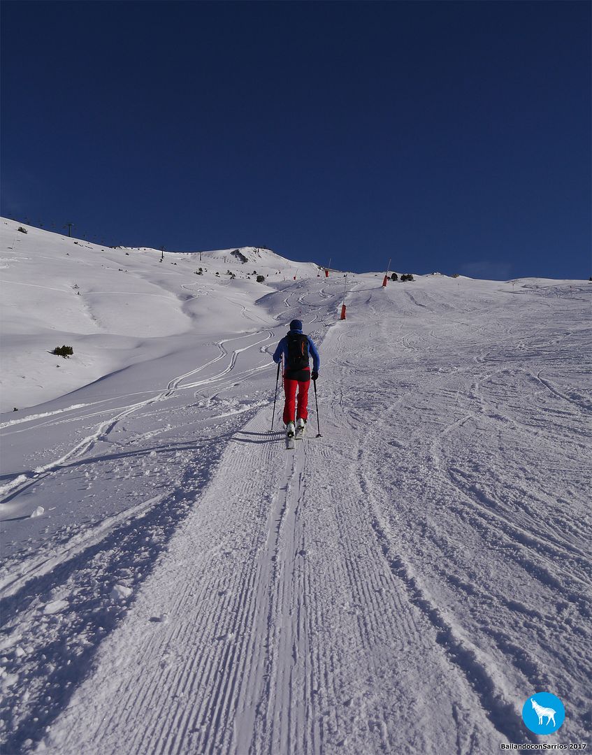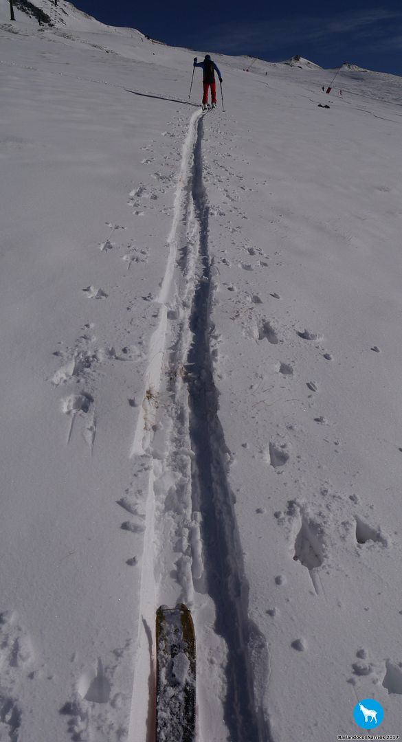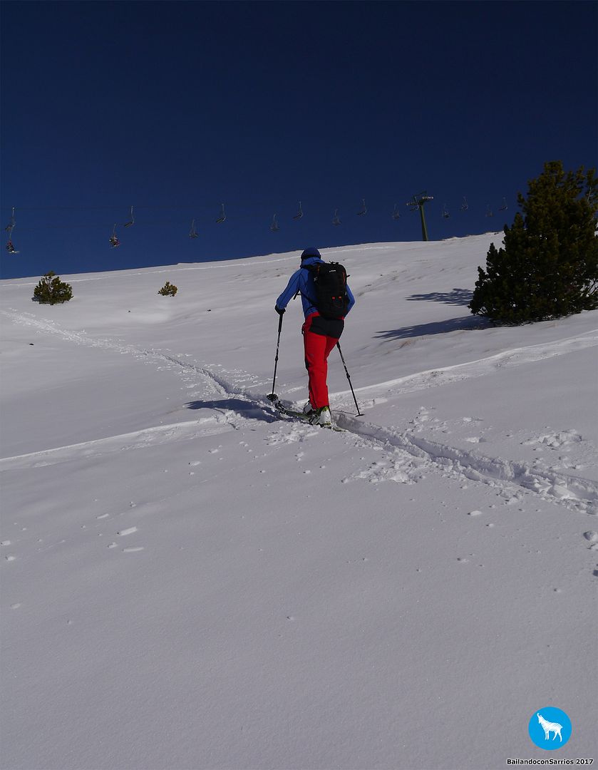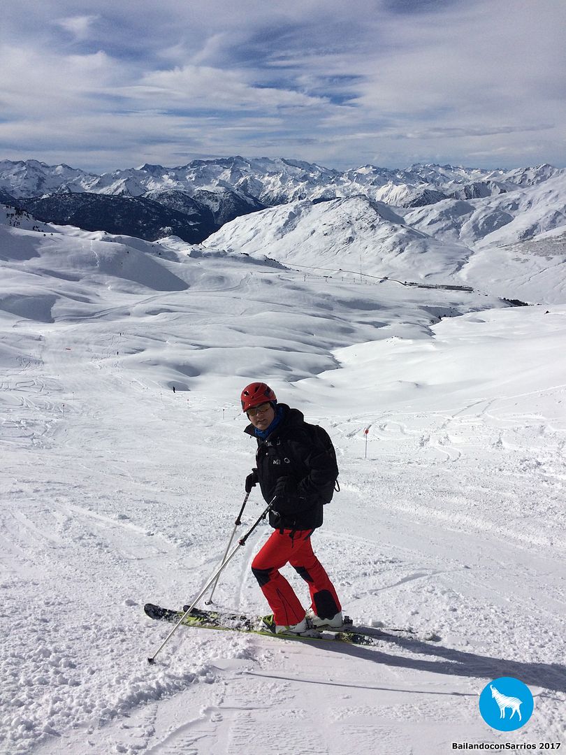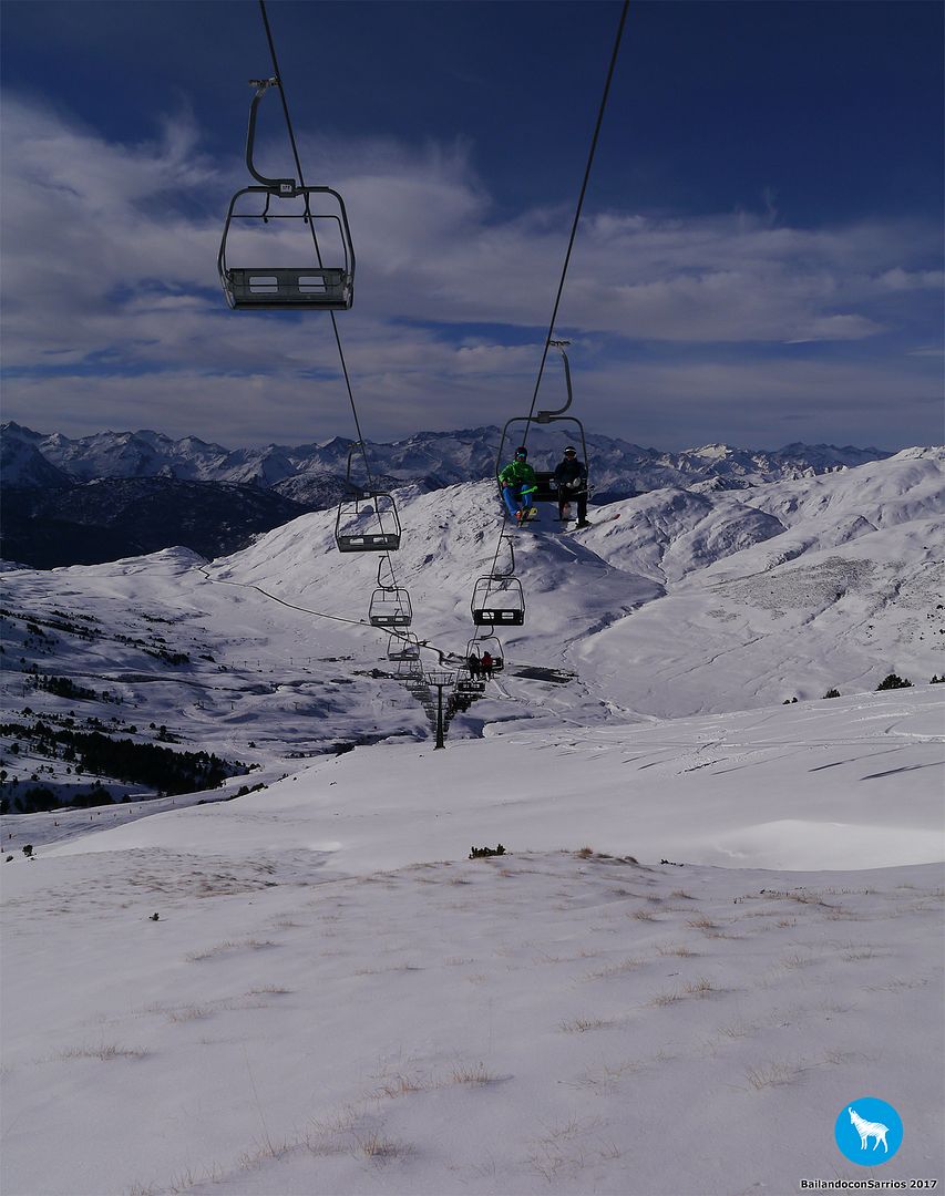 Después de charlar sobre por dónde bajar, Martín me propone descender por la pista azul Colhet de Marimanha y por Ta Dessau, por lo que tendremos que coger el famoso arrastre, veremos si no doy con mis huesos en el suelo... :)